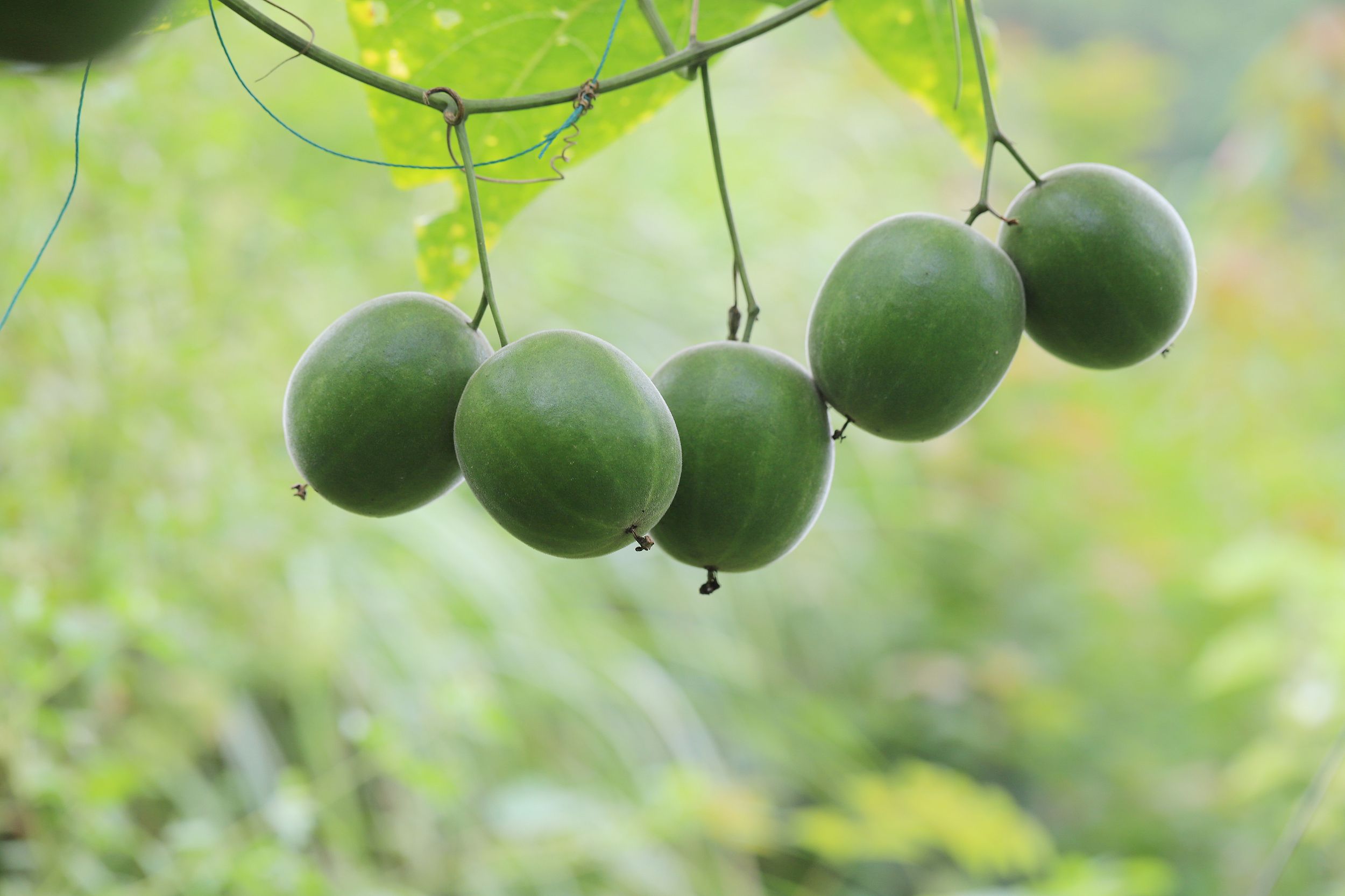 罗汉果的藤蔓,能一直爬到几米高的树上,每年夏天开花,秋天结果。它是广西桂林当地的特产经济作物,也是桂林永福县的地理标志产品。此外,在广东、湖南、江西等地也有种植。