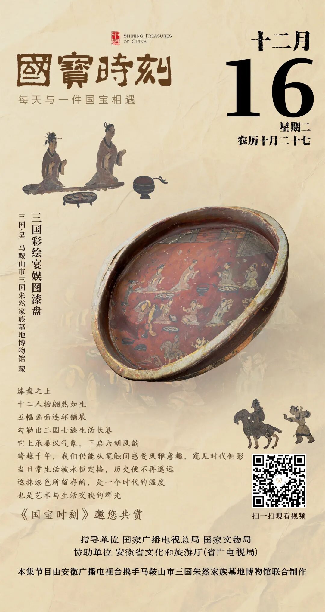 《国宝时刻・三国彩绘宴娱图漆盘》