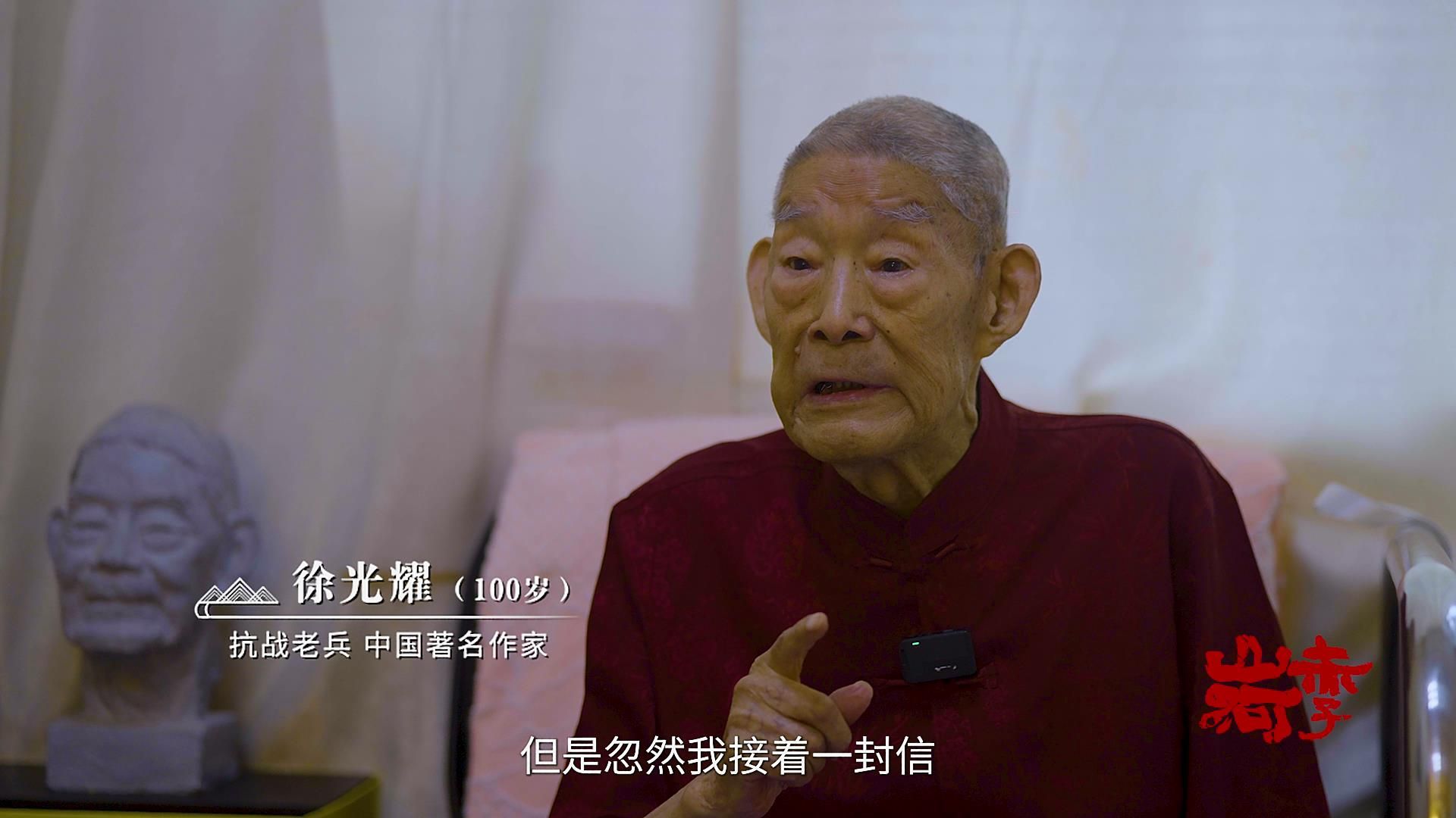 作为《山河赤子 荣耀家国》的导演,我有幸采访到了著名作家、抗战老兵徐光耀先生。今年100岁高龄的徐老精神矍铄,谈锋健敏,短短20分钟的交流,让我感受到了一位抗战亲历者的历史责任感与一位文学创作者的赤子之心。