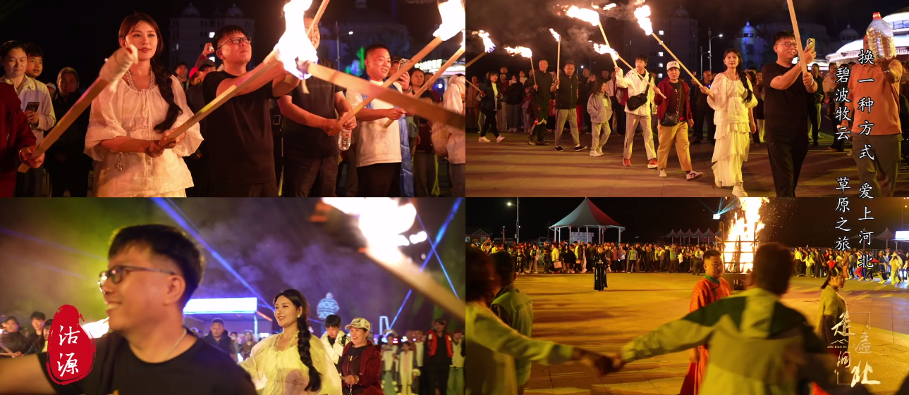 烤羊的香气尚未散去,库伦淖尔的夜空又被艺术点亮!大型水上实景演艺《心湖梦海》在湖面铺开光影画卷;而当篝火晚会《库伦淖尔狂欢夜》的鼓点响起,草原的狂欢走向高潮!