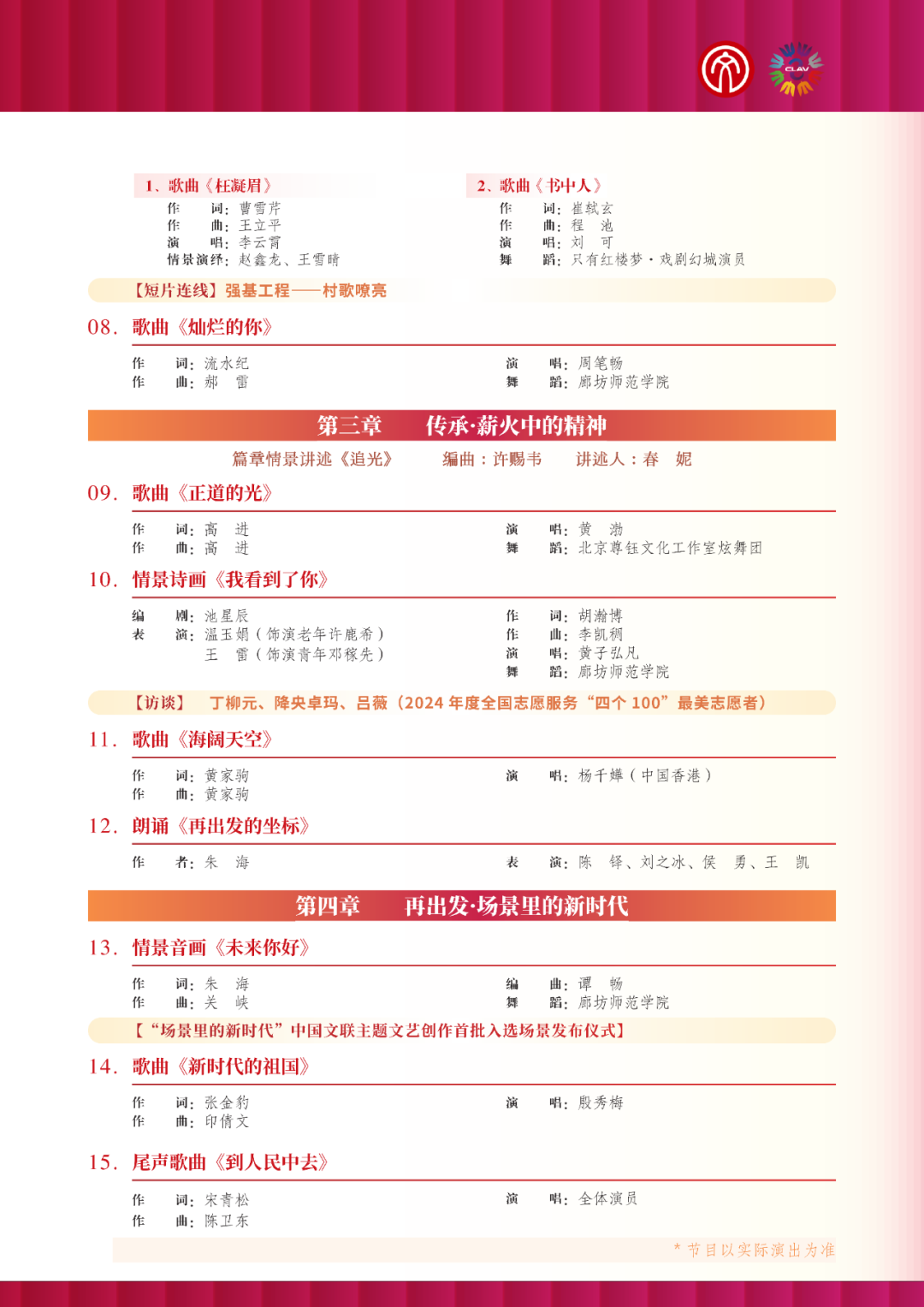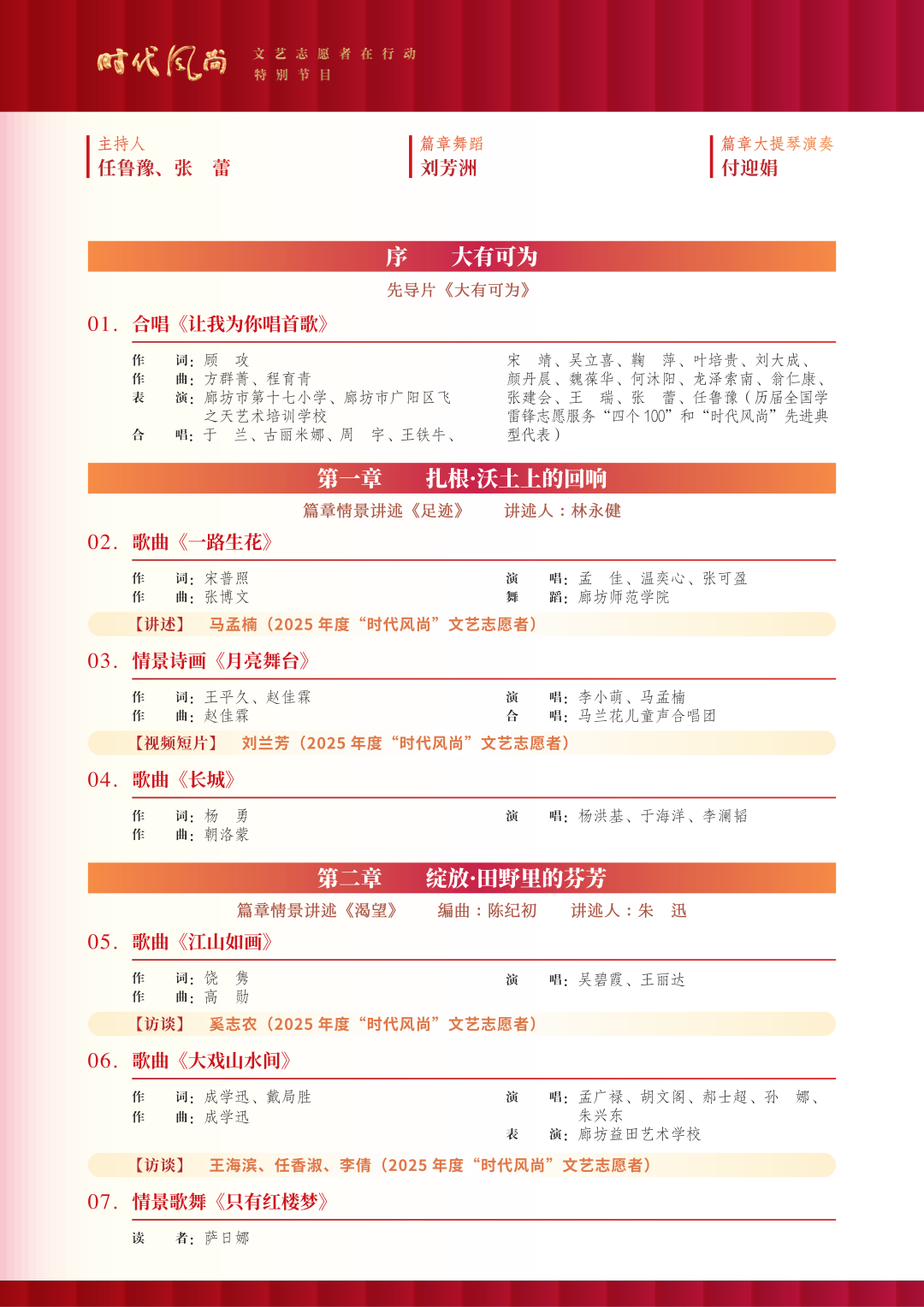 “时代风尚——文艺志愿者在行动特别节目”节目单