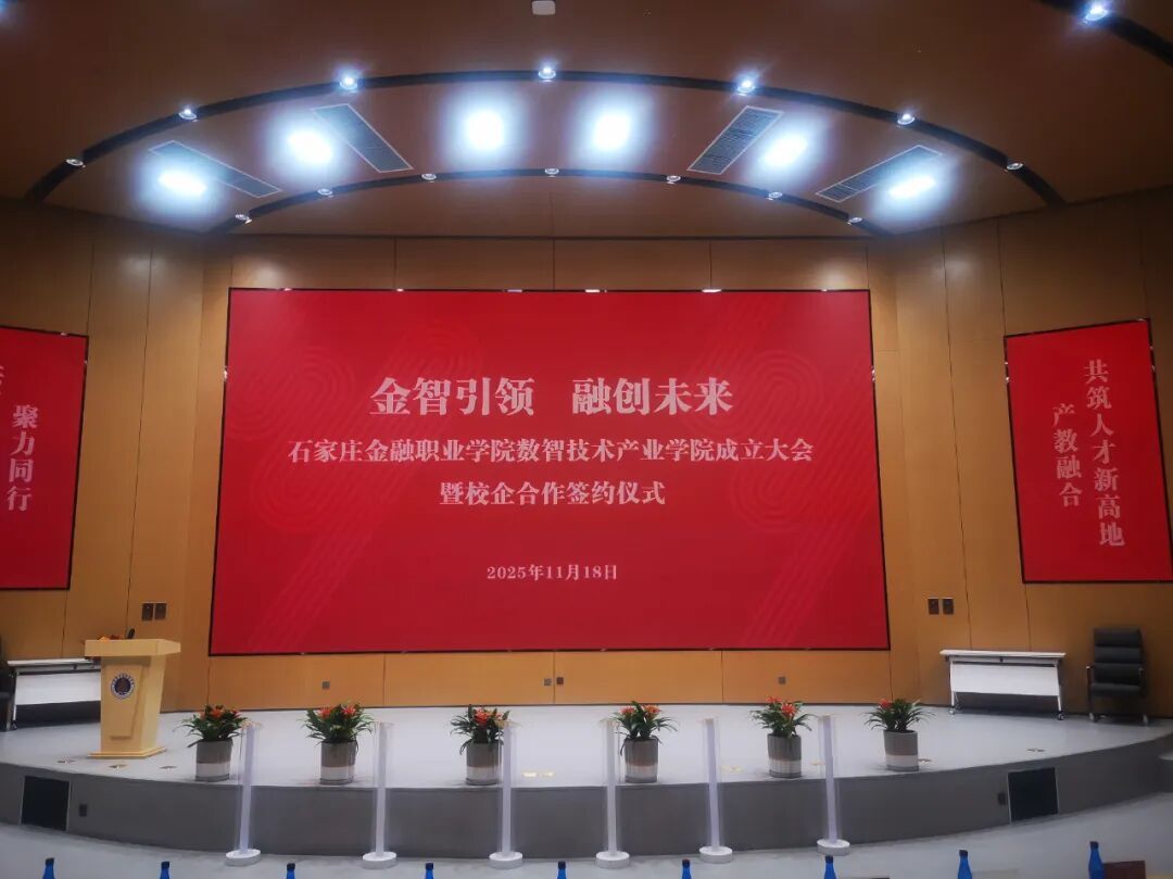 为深入贯彻落实党的二十届四中全会精神,推动教育、科技与人才强国战略,11月18日上午,我校在金石讲堂隆重举行数智技术产业学院成立大会暨校企合作签约仪式。校党委书记董慧主持大会,会议以“金智引领,融创未来”为主题,汇聚了政府代表、行业专家、知名企业及媒体嘉宾,共同见证学校在深化产教融合、构建现代职业教育体系方面迈出的关键一步,标志着“三元育人”生态体系全面升级、“双院支撑”与“四位一体”育人模式实现数智化转型,并为“五金基建”注入强劲动能。