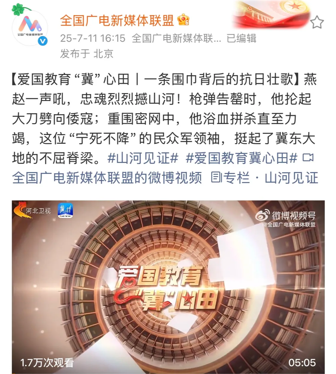 为纪念中国人民抗日战争暨世界反法西斯战争胜利80周年,充分发挥我省红色资源在爱国主义教育中的重要作用,河北广播电视台联合中共河北省委宣传部共同策划了《爱国教育“冀”心田》15期系列节目。7月12日-8月30日,该系列节目于每周六、日晚18:24在河北卫视播出。节目以“一人一物一故事”为核心模式,采用“研学走访 + 历史回溯 + 深度解读 + 当代传承”的拍摄形式,依托主持人、思政老师及学生实地走访热河革命烈士纪念馆、白求恩柯棣华纪念馆、中国人民抗日军政大学陈列馆等爱国主义教育基地,深挖革命文物精神内涵,生动再现抗战事迹。