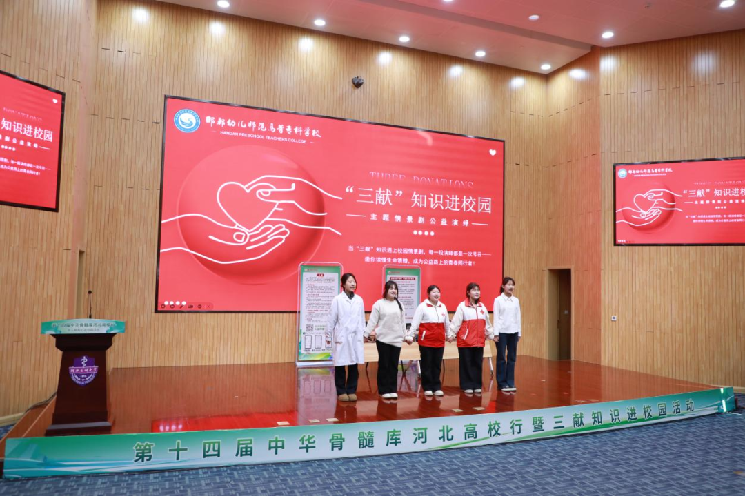 大会现场播放了此次活动总结汇报视频,回顾了活动中的精彩瞬间与暖心片段。邯郸幼儿师范高等专科学校的学子们带来了情景剧表演《热血微光:三献赋青春》,他们用生动的表演、真挚的情感,演绎了爱心传递的故事,让在场的每一个人深刻感受到“三献”事业所蕴含的温暖与希望。