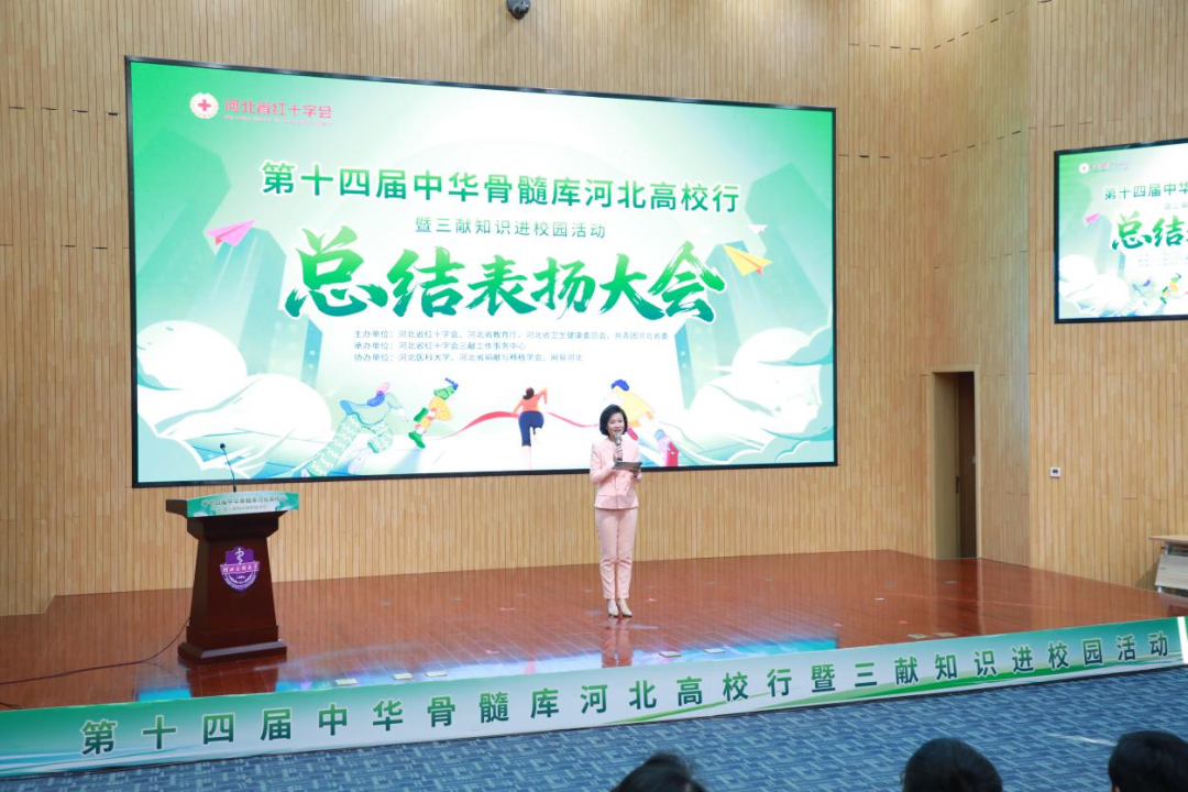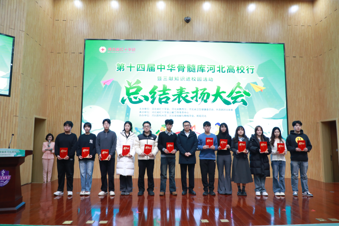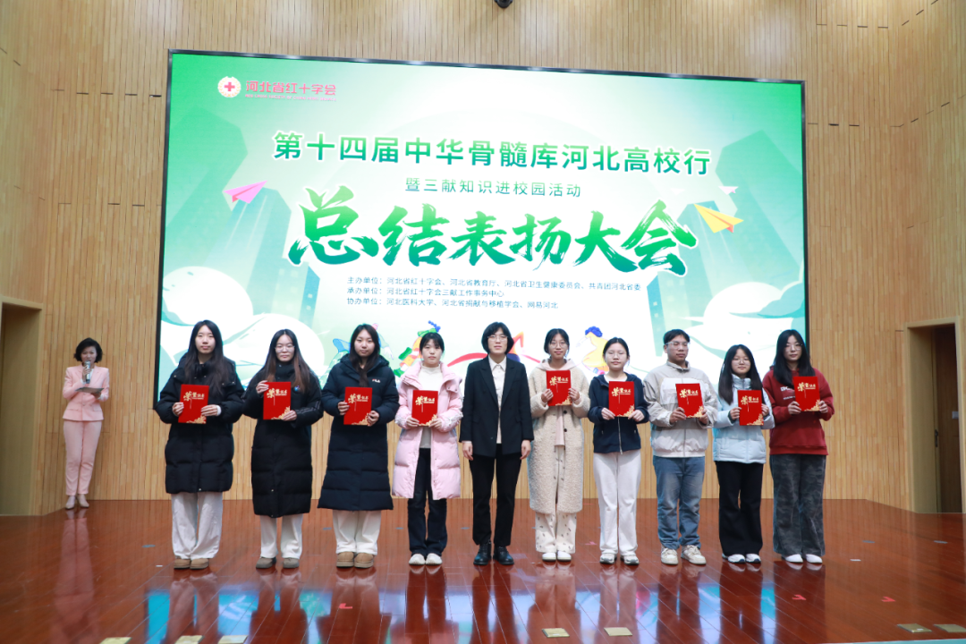 12月21日上午,“第十四届中华骨髓库河北高校行”暨三献知识进校园活动总结表扬大会在河北医科大学成功举行。本次活动由河北省红十字会、河北省教育厅、河北省卫生健康委、共青团河北省委主办,河北省红十字会三献工作事务中心承办,并得到河北医科大学、河北省捐献与移植学会、网易河北等单位的大力支持。河北省红十字会、河北省教育厅、河北省卫生健康委员会、共青团河北省委、河北省红十字会三献工作事务中心、河北省血液中心、河北医科大学等相关负责同志出席本次活动,高校师生、媒体代表等一百余人现场参会,省内其他高校及中职院校师生通过直播线上参会。