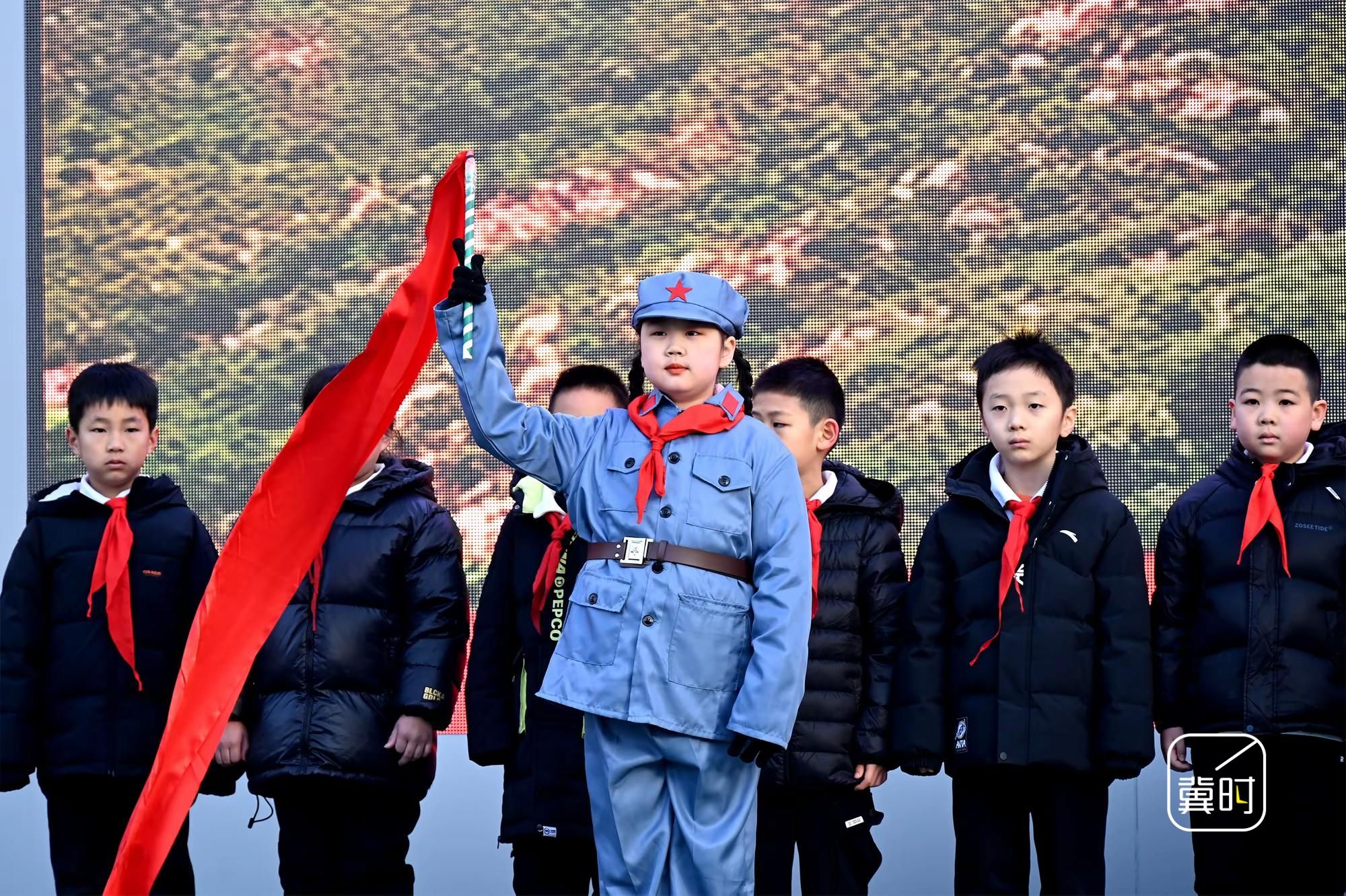 仪式上,主持人饱含深情地讲述了1935年遵义会议的历史意义,带领师生们重温了那段艰苦卓绝却充满希望的革命岁月。随后,“小红军战士”们带来情景讲述《小红旗飘起来》,他们用稚嫩却坚定的声音,重现了革命先辈们在艰难险阻面前不屈不挠、奋勇向前的身姿,让在场的师生们仿佛穿越回了那个战火纷飞的年代,感受到了革命先辈们的坚定信念和无畏精神。