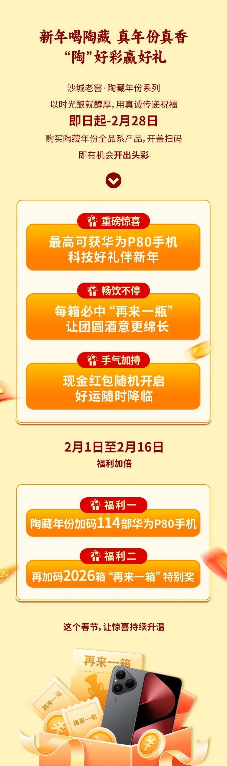 新春开盖有“礼”,喝沙城老窖送华为P80、五菱MINI,100%中奖!