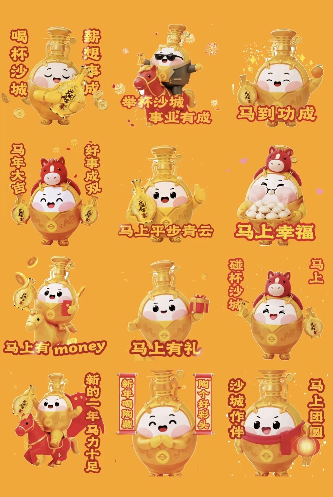同时,沙城还同步推出马年限定红包封面与“陶仔”IP表情包,尝试融入用户的春节社交场景。红包封面设计以生肖为切入点,表情包则围绕吉祥话展开设计,二者均以轻量形式进入用户日常沟通,成为节日期间流动的品牌内容。