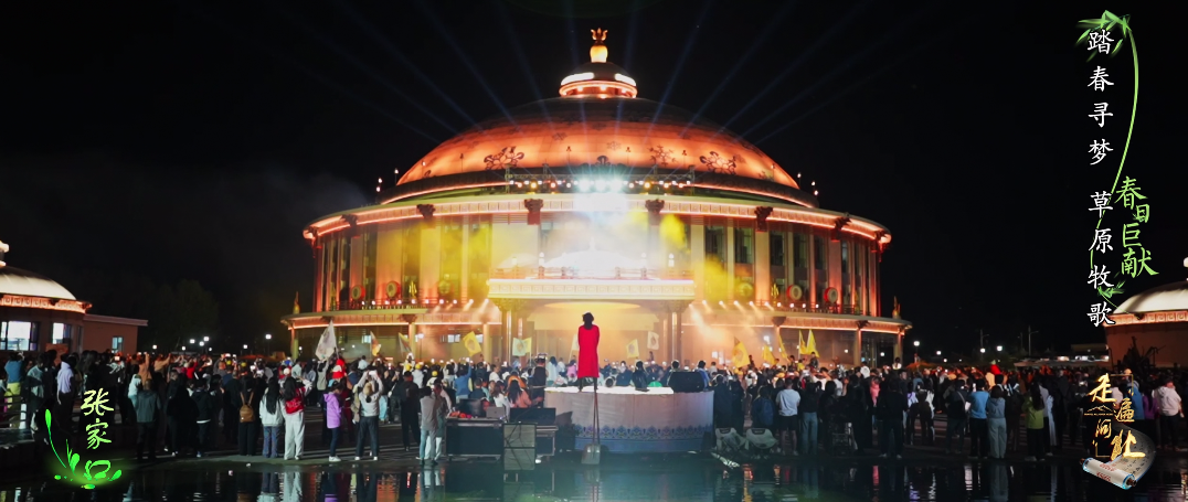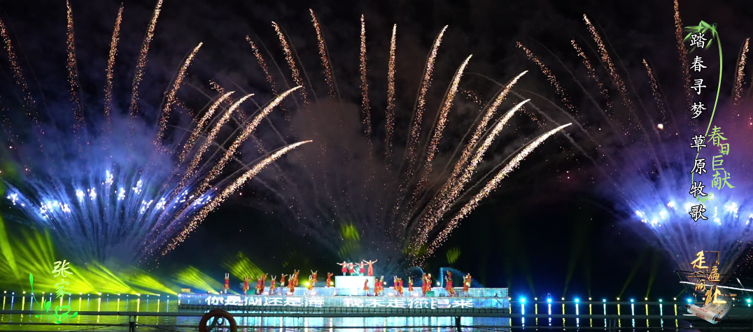 烤羊的香气尚未散去,库伦淖尔的夜空又被艺术点亮!大型水上实景演艺《心湖梦海》在湖面铺开光影画卷;而当篝火晚会《库伦淖尔狂欢夜》的鼓点响起,春夜的狂欢走向高潮!