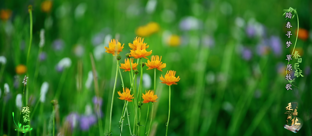 不止于清澈的湖泊,这里还拥有万亩天然湿地。待到花开时节,满地的金莲花无边无际,耀眼的黄色花瓣层层舒展,与湛蓝的湖水、翠绿的草场共同绘就一幅浑然天成的塞外春景图。
