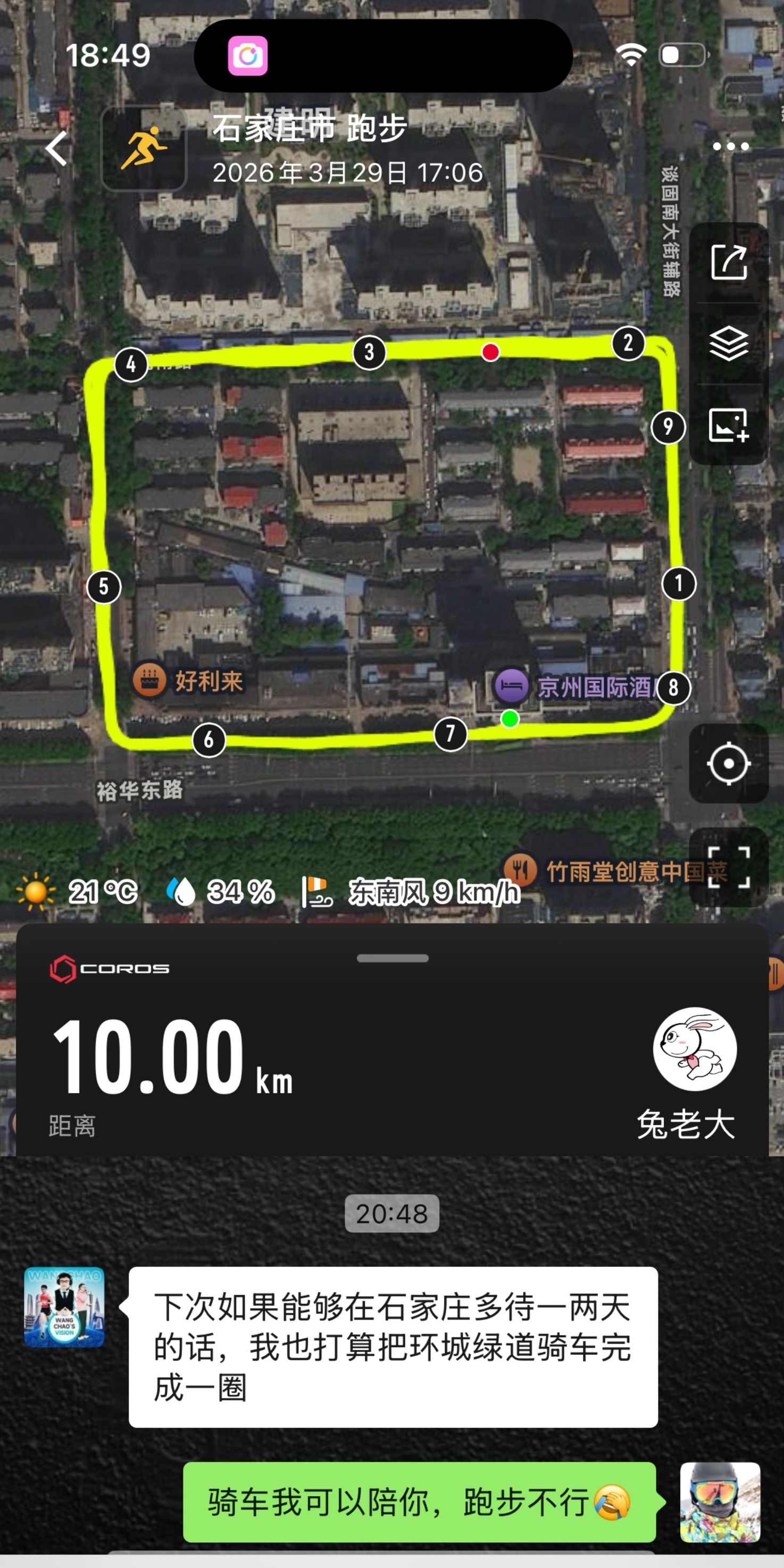 赛事结束后,王超并没有立刻离开,而是在酒店周边完成了10公里跑步训练。他觉得石家庄空气干燥清爽,不同于南方城市的高温、高湿环境,非常适合开展跑步运动。他计划下次来石家庄时,要骑行完成环城绿道全程。