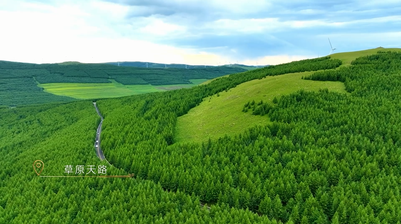 草原天路蜿蜒起伏,串联起桦皮岭、五花草甸的自然盛景;