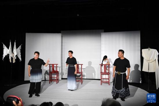 演员晁花兰(前)在北京繁星戏剧村表演《长相念》