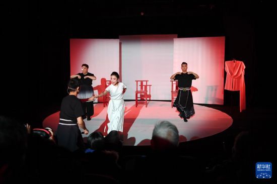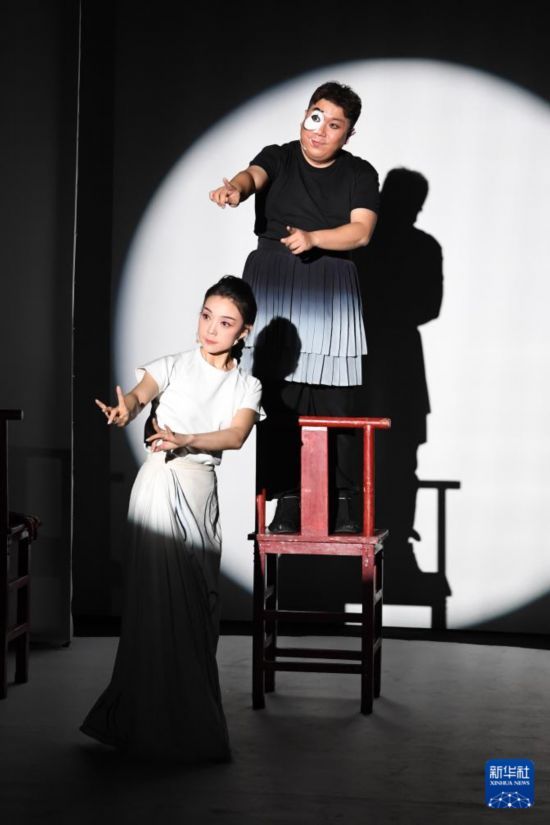 演员晁花兰(前)和常江在北京繁星戏剧村表演《长相念》