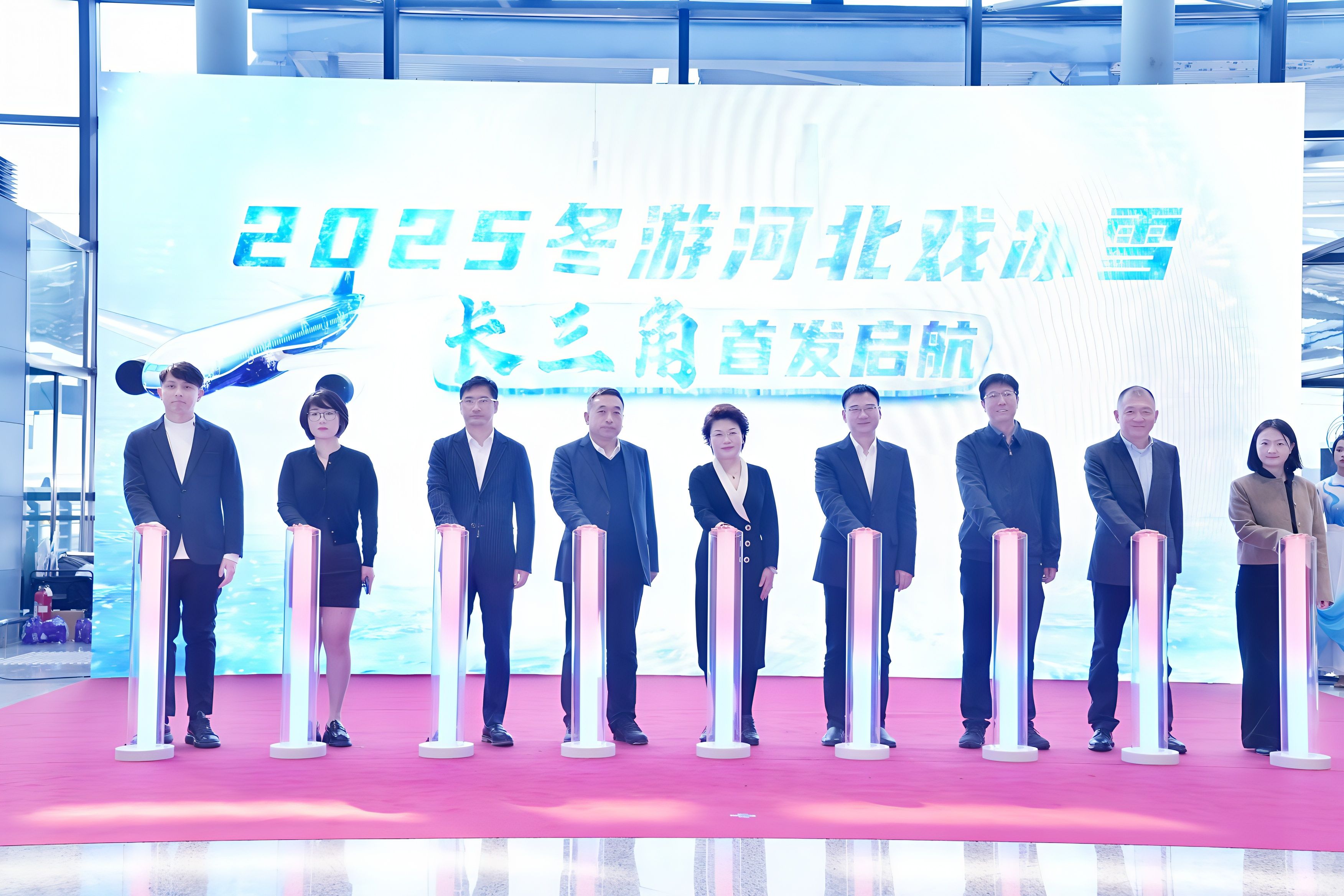 活动在“2025冬游河北戏冰雪”长三角首发启航仪式中推向高潮。在与会嘉宾和观众的共同倒数声中,河北、上海两地文旅部门、机场、航空公司以及旅行商代表共同按下启航键,标志着河北冬季旅游产品在长三角市场的全面推广正式启动。