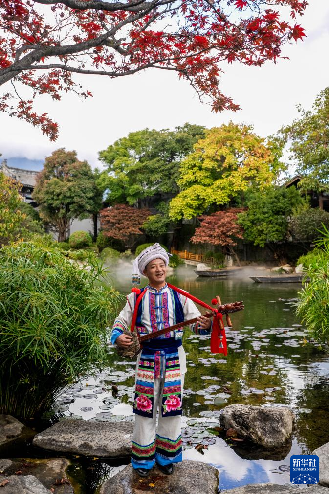 石宝山歌会省级传承人李兆元在2025非遗品牌推广周上弹唱
