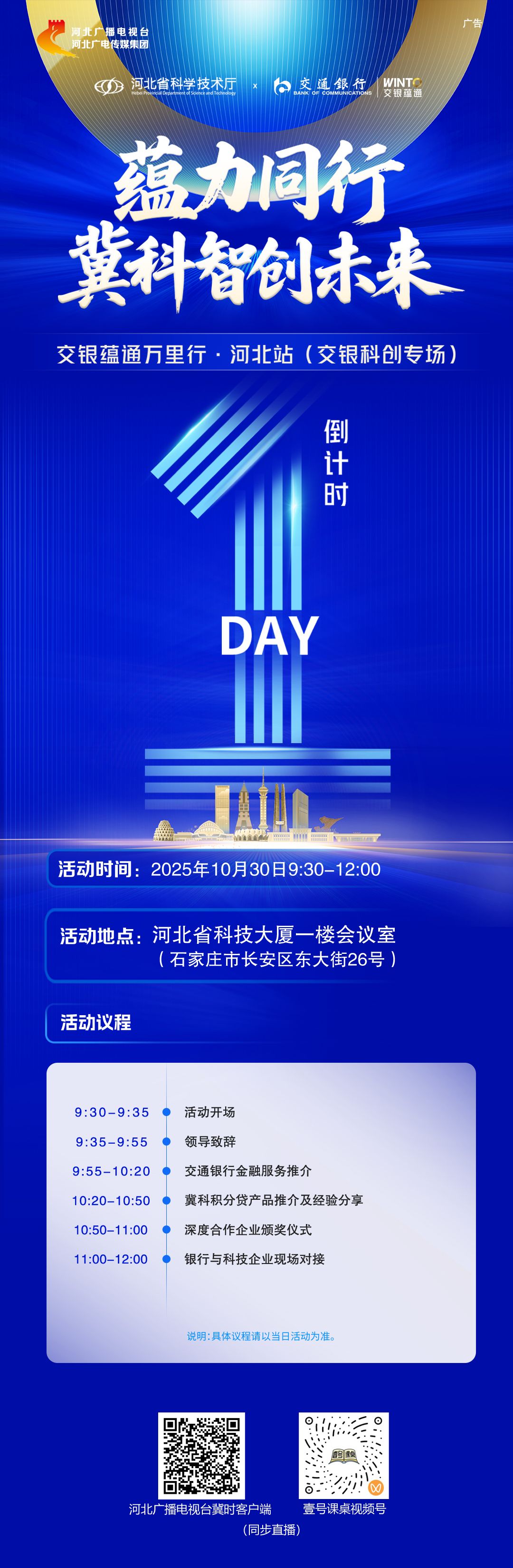 【倒计时1天】交银蕴通万里行·河北站(交银科创专场)即将开启