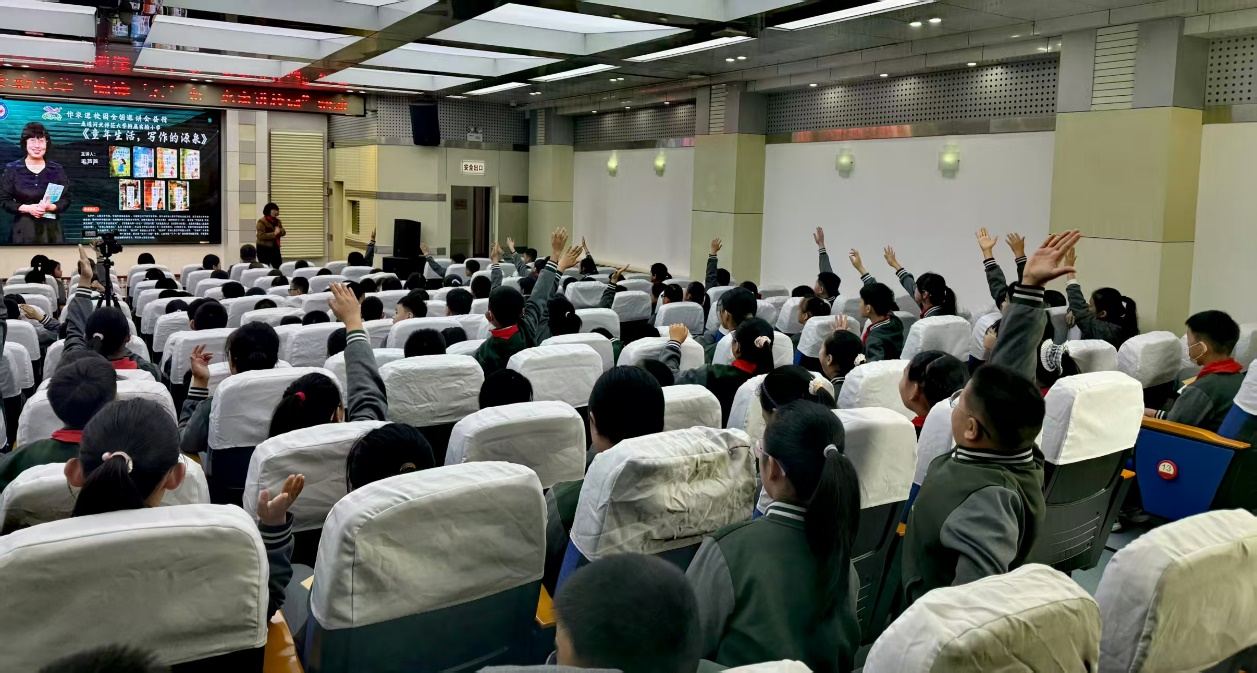 在活动现场,毛芦芦老师结合自身创作经历,围绕“童年生活是写作的源泉”这一主题展开深度交流。她用生动鲜活的事例,引导孩子们发现藏在平凡日常里的写作灵感——一次课间游戏、一个温暖微笑、一段难忘回忆、一次与自然的相遇,都可以成为笔下动人的故事素材。她耐心传授观察生活、感受美好、记录成长的方法,一步步激发孩子们的阅读热情,唤醒他们的表达渴望。