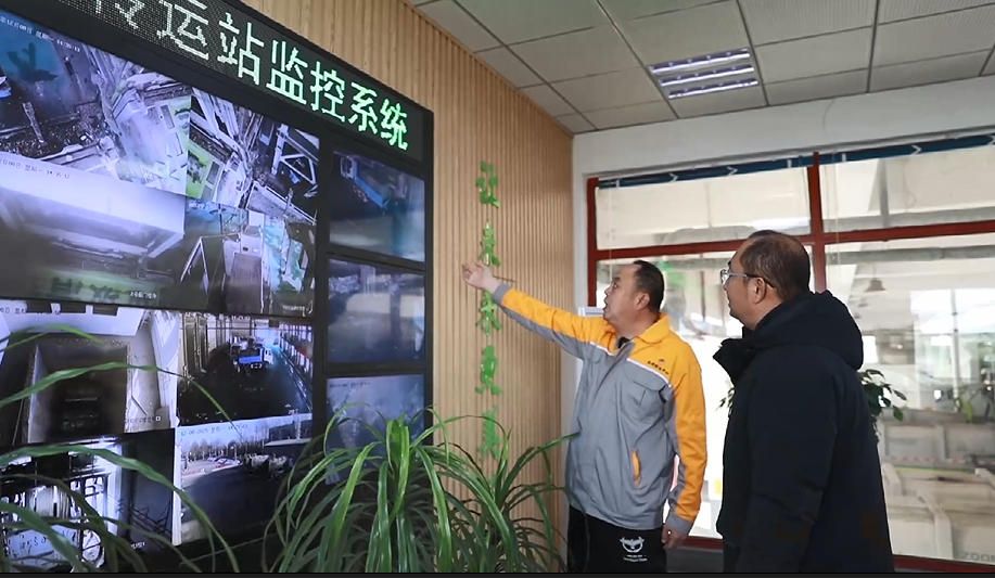 邢台市生活垃圾压缩转运站 党支部书记 刘剑磊:你看,首先像这样的屏幕显示就是送垃圾的车进来,进到我们二楼卸料平台,在卸料口里面进行压缩,等把转运箱压满之后,由我们的转运车辆再运送到沙河和巨鹿两个垃圾焚烧厂,进行最终焚烧处理。