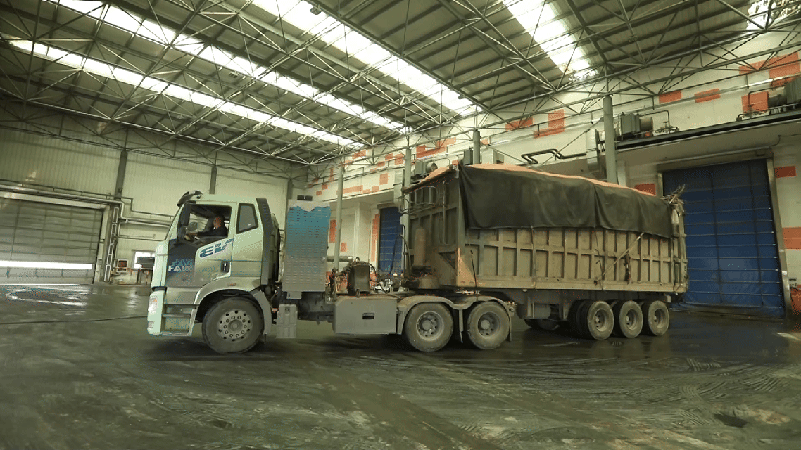 记者 刘涛:我现在是在无极县的石家庄嘉盛新能源有限公司,我旁边的这辆车就是运输垃圾的车辆。 它现在正在通过卸料大厅,把整车的垃圾运送到垃圾的卸料车间,这是一整车的垃圾。