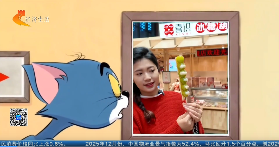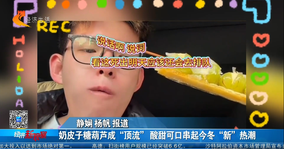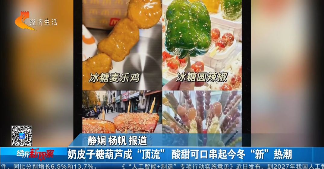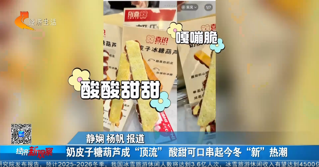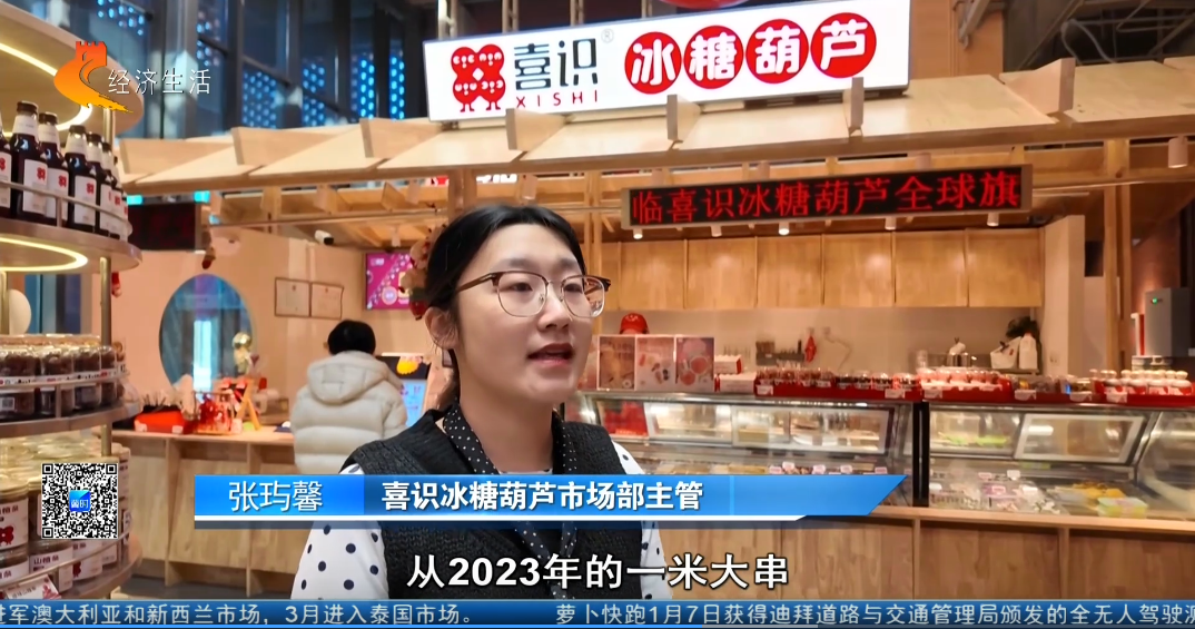 喜识冰糖葫芦市场部主管 张玙馨:其实糖葫芦的顶流年年换。从2023年的一米大串儿,到2024年的辣条糖葫芦,再到2025年的奶皮糖葫芦。但是,核心其实都是在传统的基础上做微创新。同时我们也紧跟着市场的趋势,推出了一些像榴莲果肉糖葫芦啊,菠萝蜜加草莓糖葫芦这样的新品。上市之后,新品的销量占比也能达到20%。