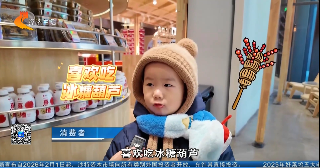 喜识冰糖葫芦市场部主管 张玙馨:今天奶皮子糖葫芦这款顶流单品的销售,其实效果是远超预期的。奶皮子糖葫芦上市仅一个月,就占据了公司品牌总营收的30%左右,也带动了公司的整体销售额同比增长了大概45%。我们选用的是内蒙古草原的纯手工奶皮子搭配的去核山楂,既保留了传统糖葫芦的酸甜底色,又叠加了奶皮子的醇厚口感,在这方面是精准了击中年轻人的这个怀旧和尝鲜的一个双重需求。