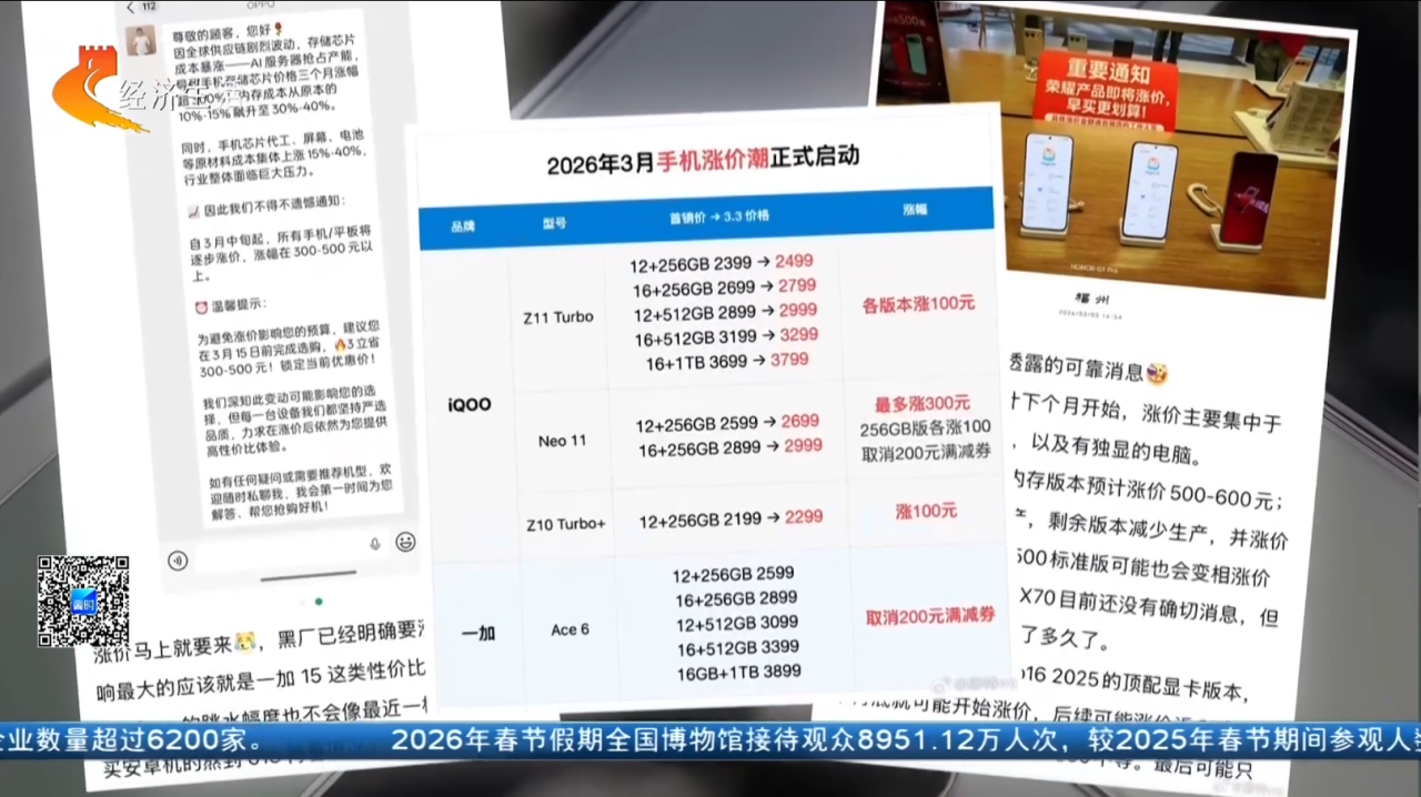 经销商对手机价格上涨的预估并非凭空捏造。据供应链及品牌方多方确认,本轮涨价潮将于3月正式落地:老款机型小幅跟涨,而3月之后发布的新品,起步价普遍上调超千元;中高端旗舰机型,涨幅甚至可能达到2000至3000元。目前,行业内普遍预测,今年手机价格有可能出现一年内多次上调,这种情况在国内手机市场前所未有。