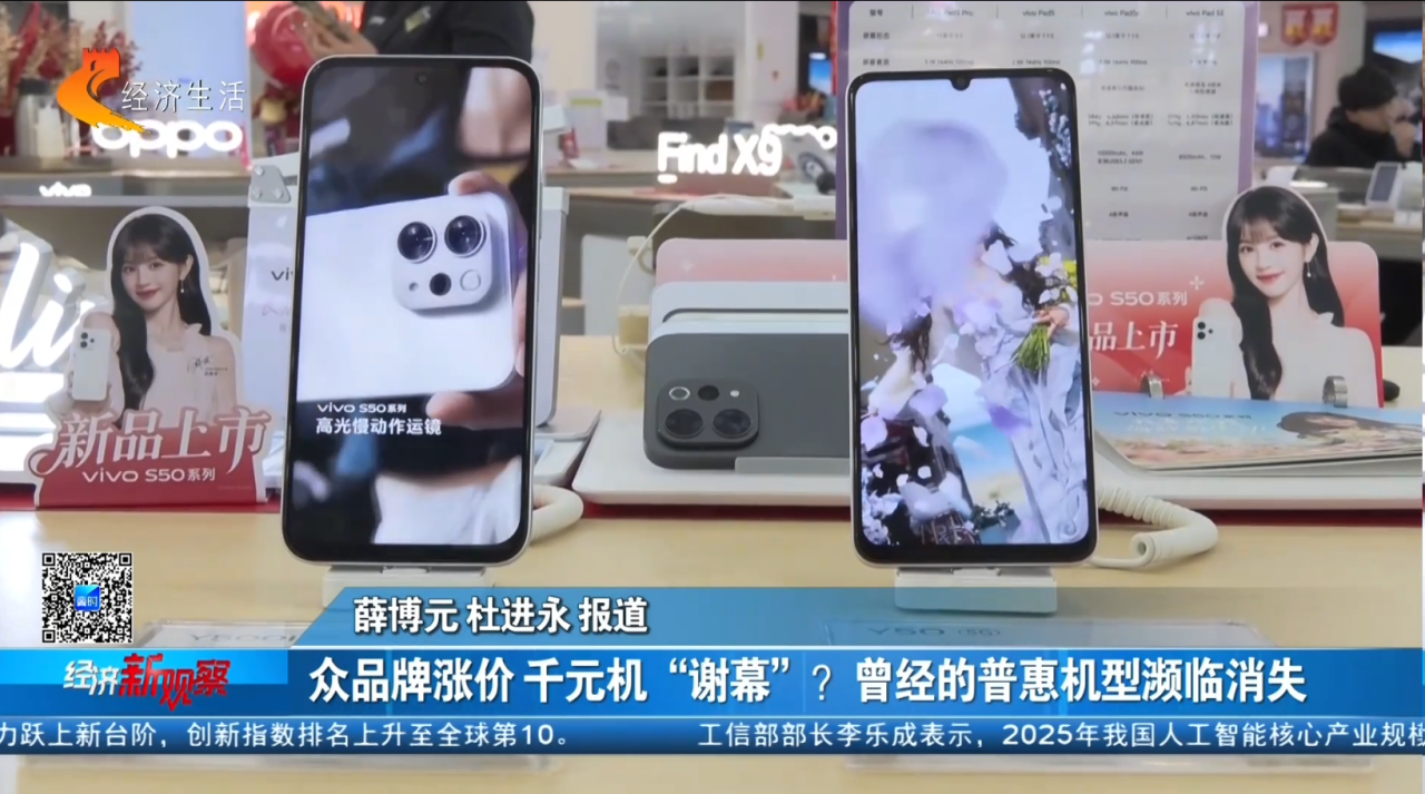石家庄北国电器总店vivo导购员:2025年的时候,大概千元机的类型还比较多一些,现在来说,同等配置的,价格也是提升了一些。