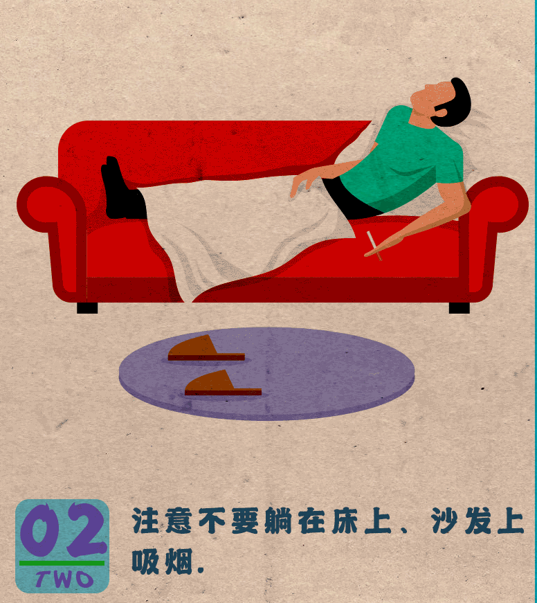 请勿躺在床上或沙发上吸烟