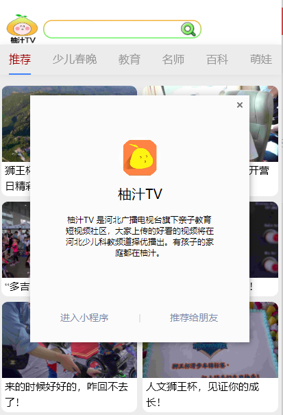 2、官方授权,“少儿TV”公众号和“冀时”客户端捆绑宣传;