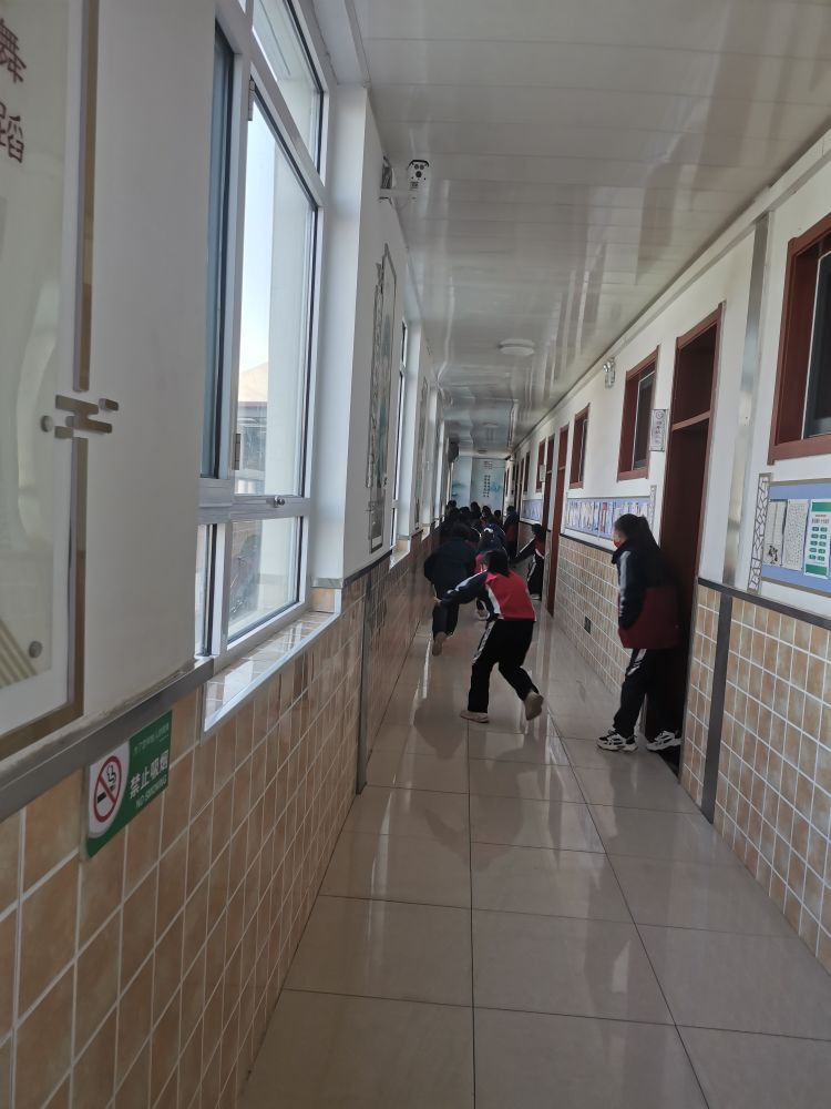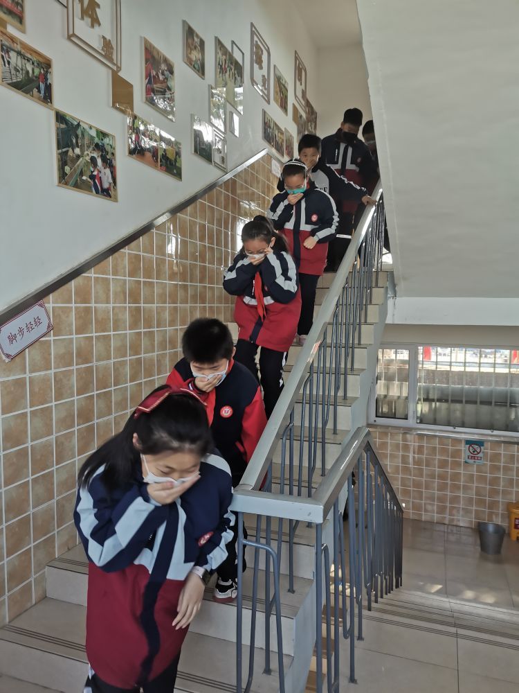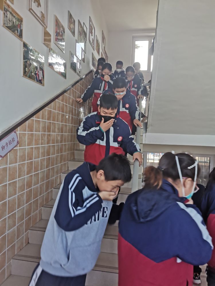 演练开始之前,班主任为学生详细讲解火灾逃生线路、逃生姿势、注意事项。随着火灾警报声响起,应急疏散小组的各成员迅速到位,全体师生弯腰捂口鼻,有序地按照预先制定的路线疏散,快速安全地撤离到了操场安全地带,无一人发生踩踏事件。到达操场,班主任清点人数,确定学生全部安全撤离。
