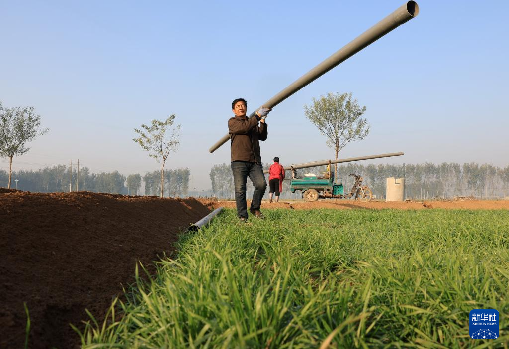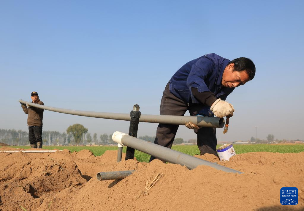近日,石家庄晋州市的农民利用冬闲时节在农田安装、检修节水喷灌设施,田间地头呈现出一派繁忙景象。近年来,石家庄晋州市持续推进高标准良田建设,促进农业增产、农民增收。据介绍,目前该市建设高标准良田达33万亩。