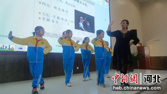 中新网河北新闻12月4日电 (徐巧明 陈苗苗)“兰花指翘起来,眼神跟着手的方向……”近日,在河北省易县易州学校活动教室内,河北省戏曲家协会会员、保定艺术学校老师白素格现场为同学们示范和指导戏曲基本动作。