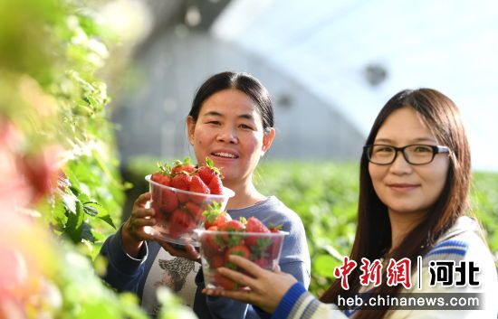 中新网河北新闻12月4日电 (孙慧军)近日,农民在张家口市怀来县存瑞镇永安村盛鸿庄园草莓基地采摘草莓。