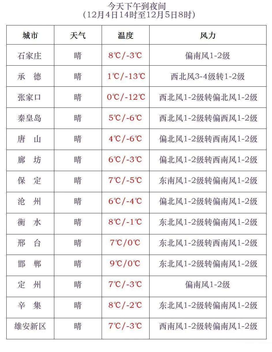 今天下午,张家口、承德、保定西北部有西北风4到6级,部分地区阵风7到9级,渤海海域和沿海地区有西北风5到6级,阵风7到8级。