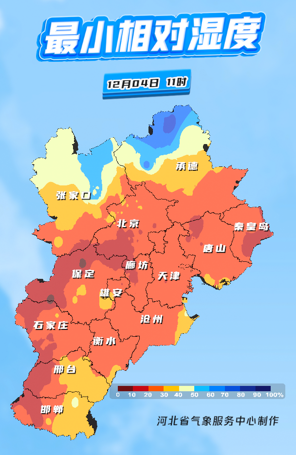 根据国家气象站观测数据统计,今日11时,我省大部分地区的空气相对湿度都在30%上下;局地低于20%,空气非常干燥。