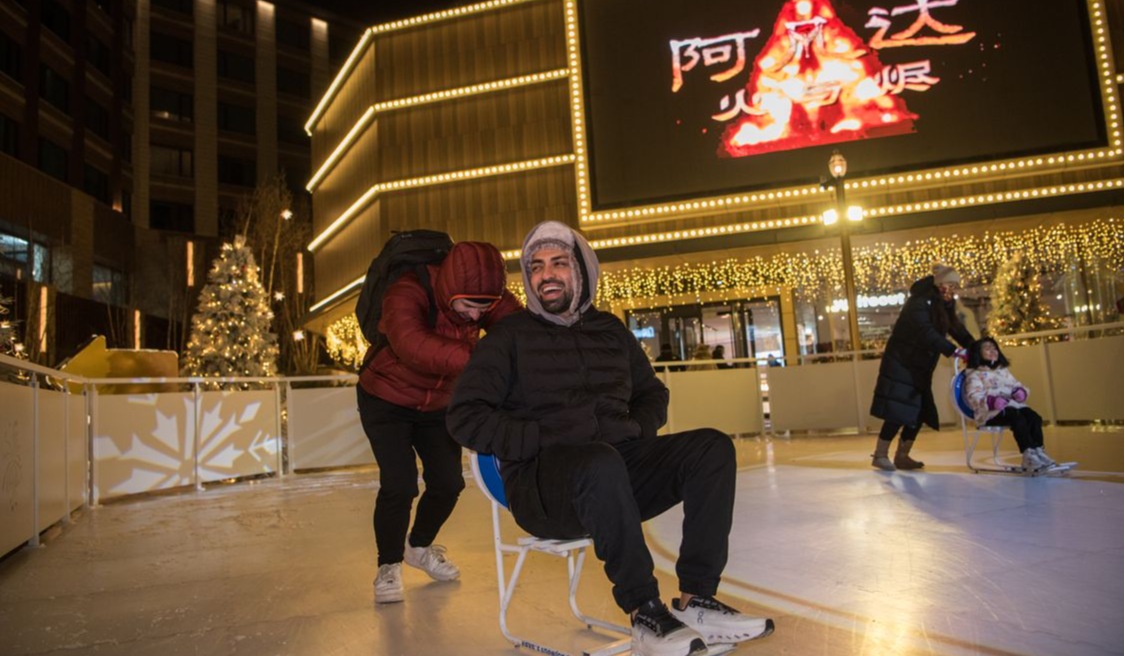 △加拿大自媒体界友好人士在崇礼拾雪川小镇体验冰上活动