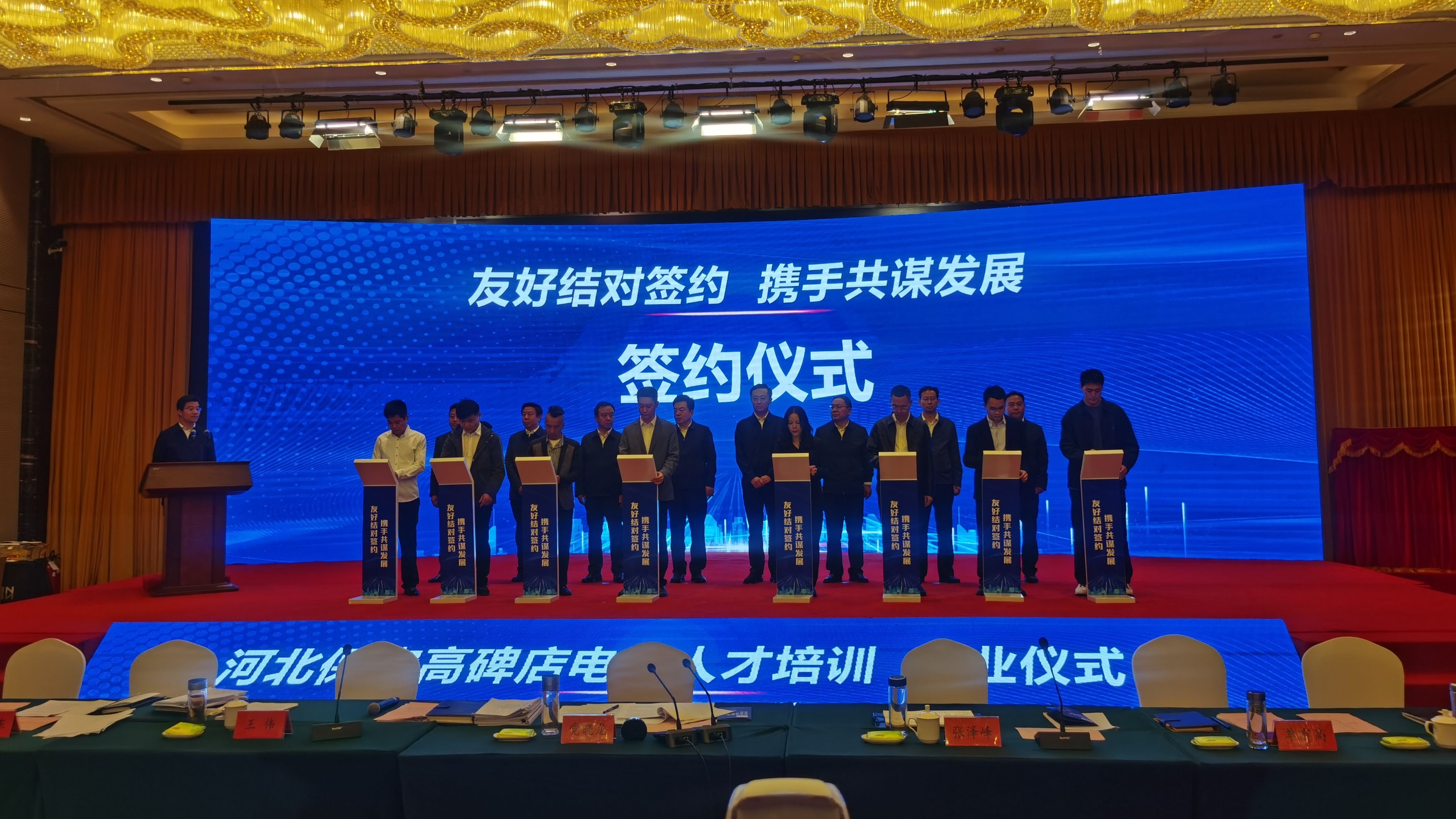 结业式现场举行了“河北省电子商务示范基地”揭牌仪式。首衡电商直播基地还分别与京东物流签订物流合作协议,为商户电商直播提供物流支撑。此外,河北胜裕食品与首衡云仓河北久农供应链以及广东寰球数农网络科技有限公司、广东雅和网络科技有限公司与学员代表就品牌孵化、短视频孵化签订一揽子合作协议,在电商配套、直播赋能、物流配送、品牌打造等方面达成合作,共同构建电商产业生态系统。