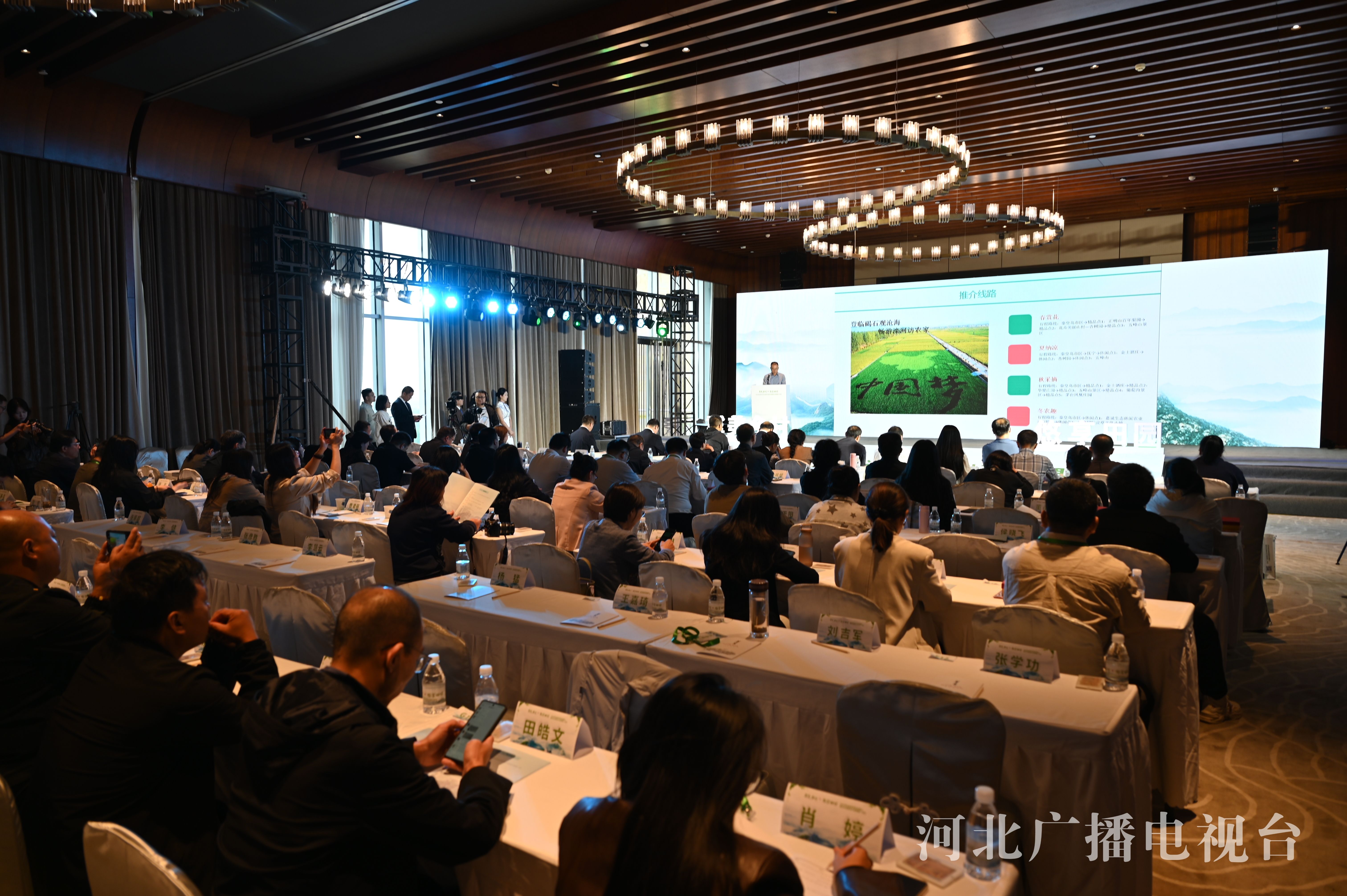 会上,秦皇岛市昌黎县以全季全域农旅精品线路为主题,以春夏秋冬为时间线,展开讲述县域农旅新模式。保定市阜平县基于深厚的红色文化底蕴,向大家推介了骆驼湾村、黑崖沟村等高质量“打卡点”,香菇宴、硒鸽宴吊足大家胃口。秦皇岛市房庄村党支部书记房文平亲自上台,将发展乡村旅游的亲身经历,以情景剧的形式向大家呈现。活动现场设立了全省休闲农业发展状况、“冀忆乡情”最佳定制作品展、历届休闲农业推介活动精彩回顾以及昌黎特色农产品等展区,让游客在品味乡村美景的同时,也能感受到浓厚的乡村文化氛围和丰富的农产品资源。