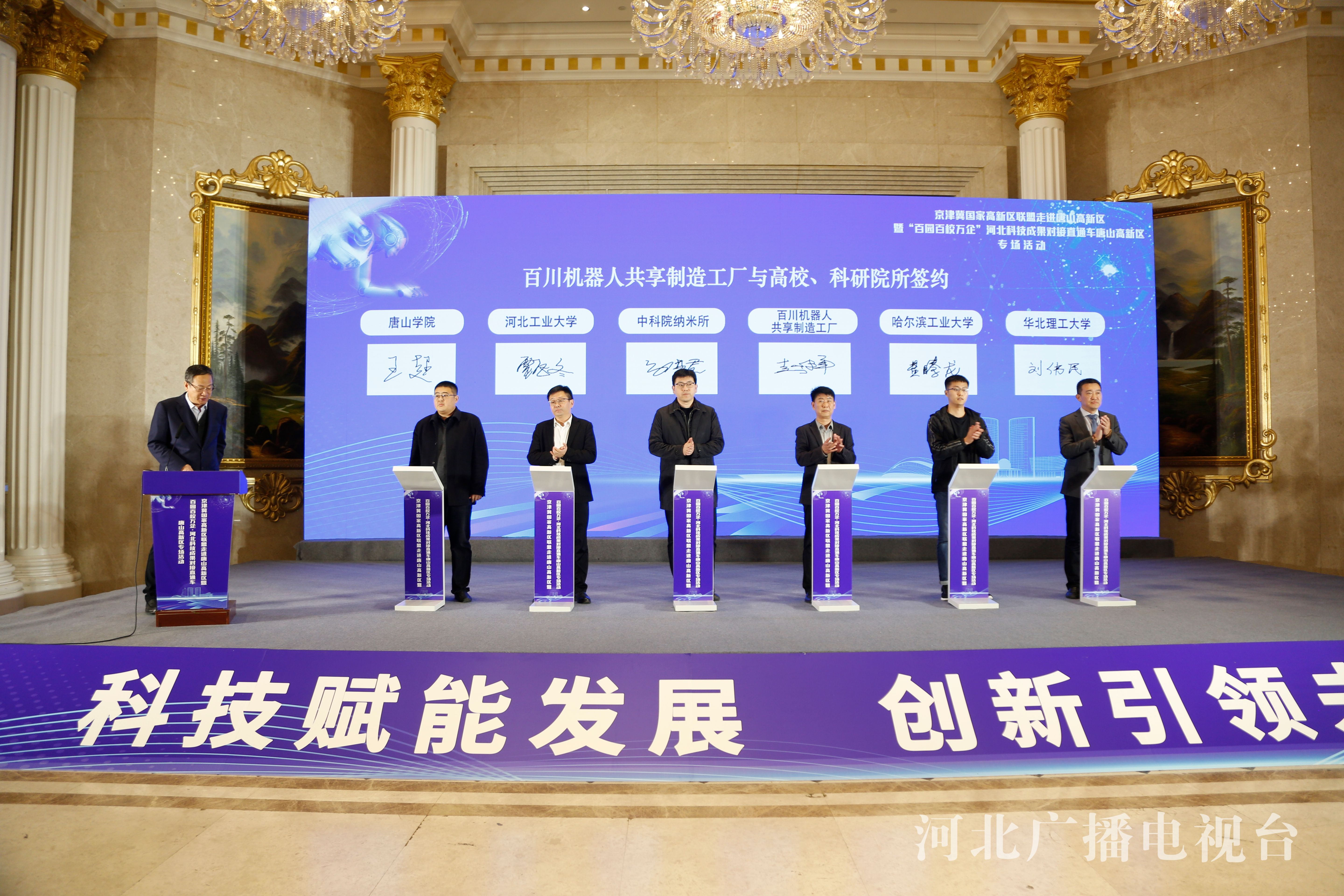 活动期间,百川机器人共享智能制造工厂与中科院纳米所、哈尔滨工业大学、河北工业大学、华北理工大学、唐山学院签约,共同开展新产品研发试制合作。清华大学精密仪器系副研究员纪兴龙博士、天津大学技术转移中心副主任陈雪、哈尔滨工业大学黄腾龙博士等专家学者围绕机器人产业创新发展趋势主题开展了演讲和项目路演,并与区内企业开展了产学研合作深度交流。