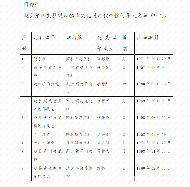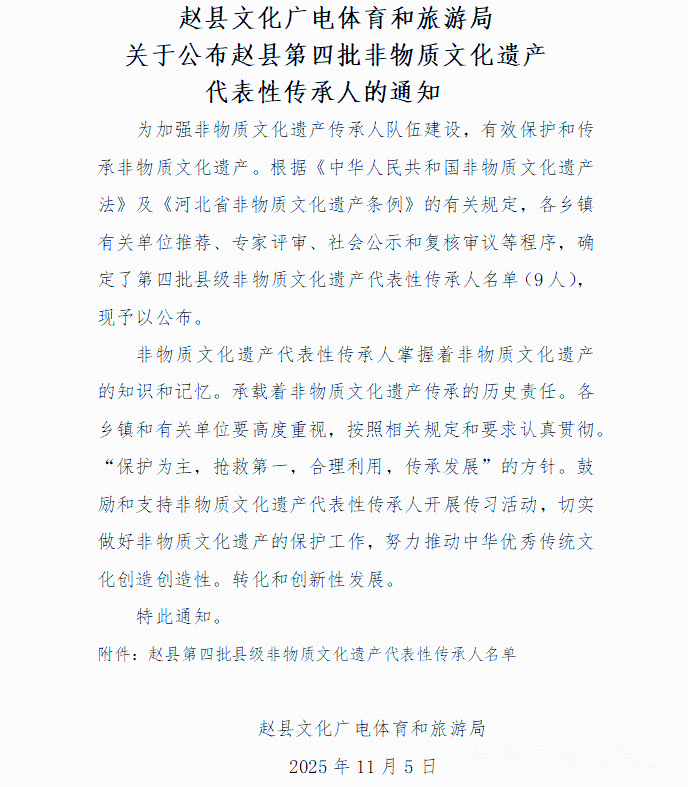 冀时客户端报道(河北台 杜岩卿 通讯员 聂聪超)为加强非物质文化遗产传承人队伍建设,有效保护和传承非物质文化遗产,11月5日,石家庄市赵县确定了第四批县级非物质文化遗产代表性传承人。