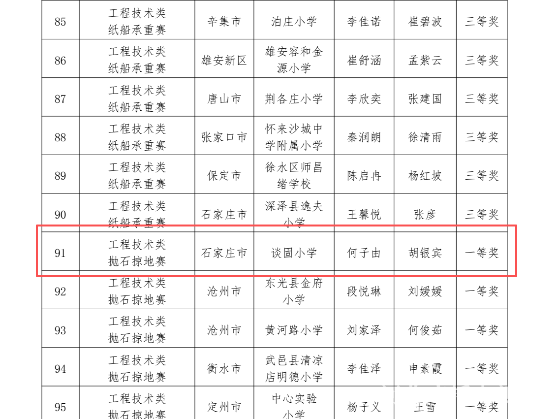 备赛期间,每天下午,谈固小学的五楼中厅里,都能看到何子由忙碌的身影:找材料、搭结构、反复调试。面对“皮筋下滑投不远”的难题,他不气馁,和指导老师胡银宾一起琢磨出“多皮筋分段缠紧”的妙招,还在这一过程中吃透了三角形稳定性、杠杆原理等科学知识。“原来科学不是光听,得动手试。”何子由的感悟,正是他成长的见证。
