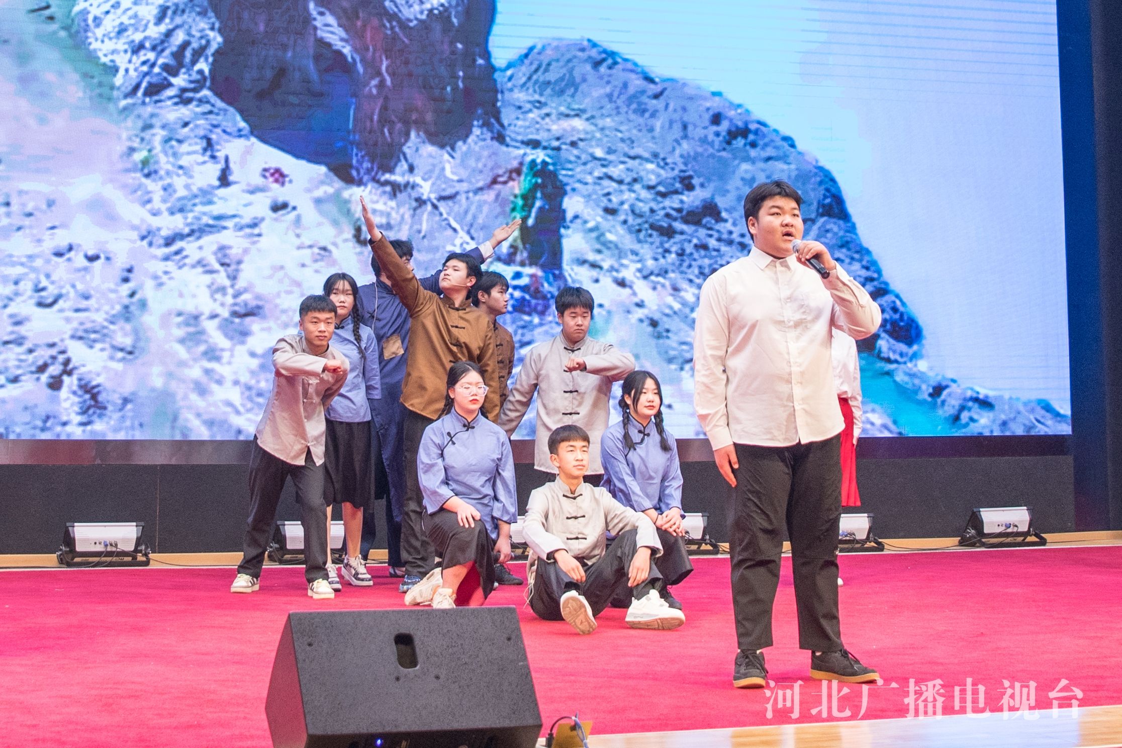 报告厅内,同学们身着契合主题的服饰,声音时而铿锵激越,时而婉转绵长,将文字化为情感的流淌,让历史照进现实,《岳阳楼记》的豪迈、《陋室铭》的清雅、《灯火里的中国》的温暖、《可爱的中国》的深情……一段段经典在同学们饱满真挚的诵读中“醒”来,也让现场观众接受视听与心灵的双重浸润。