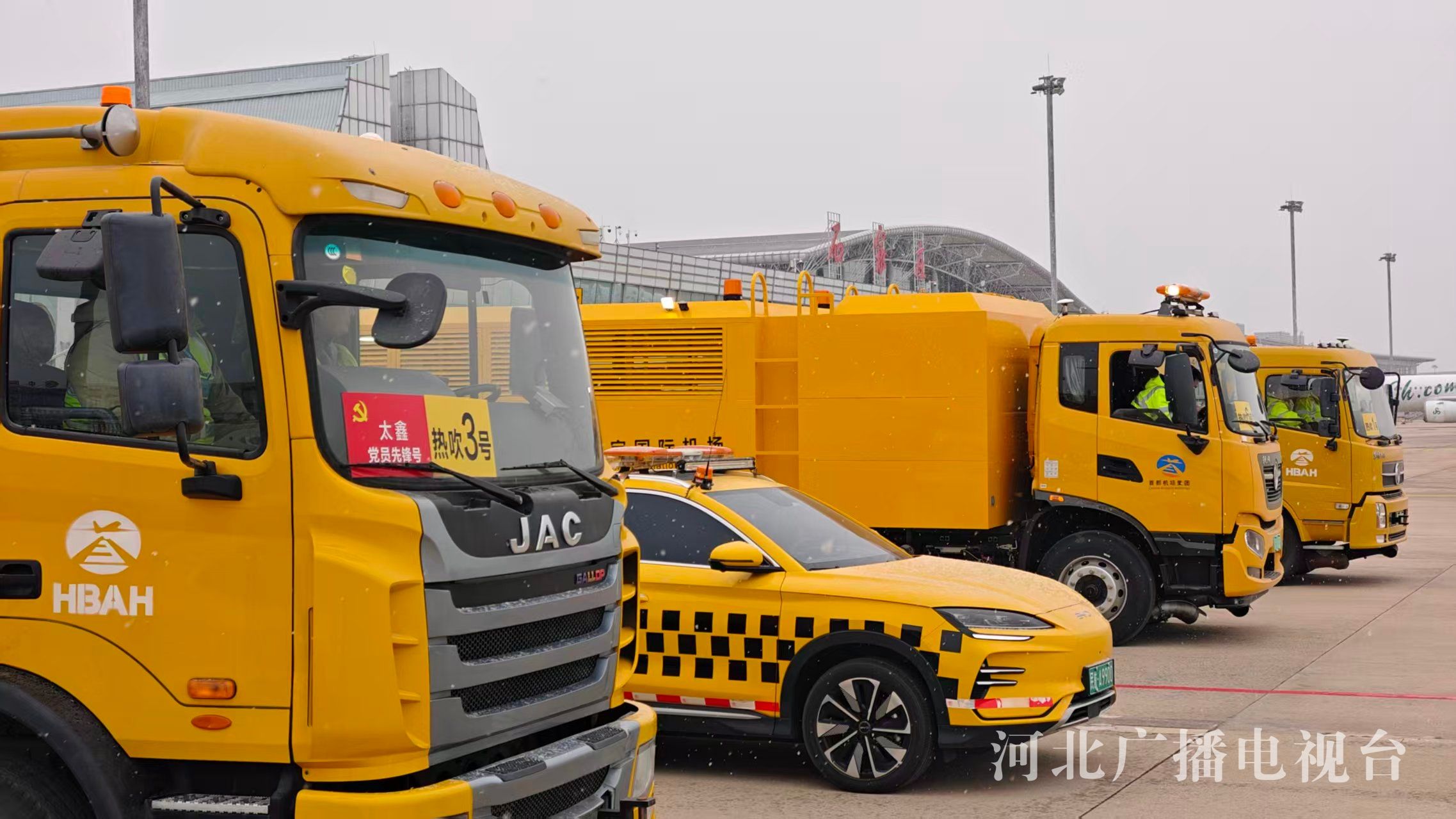 冀时客户端报道(河北台 杜岩卿 通讯员 常永辉)12月12日早晨,石家庄机场出现降雪天气,机场各相关单位有序开展航班保障、飞行区场道机坪除雪、航空器除冰等工作,机场航班运行正常。
