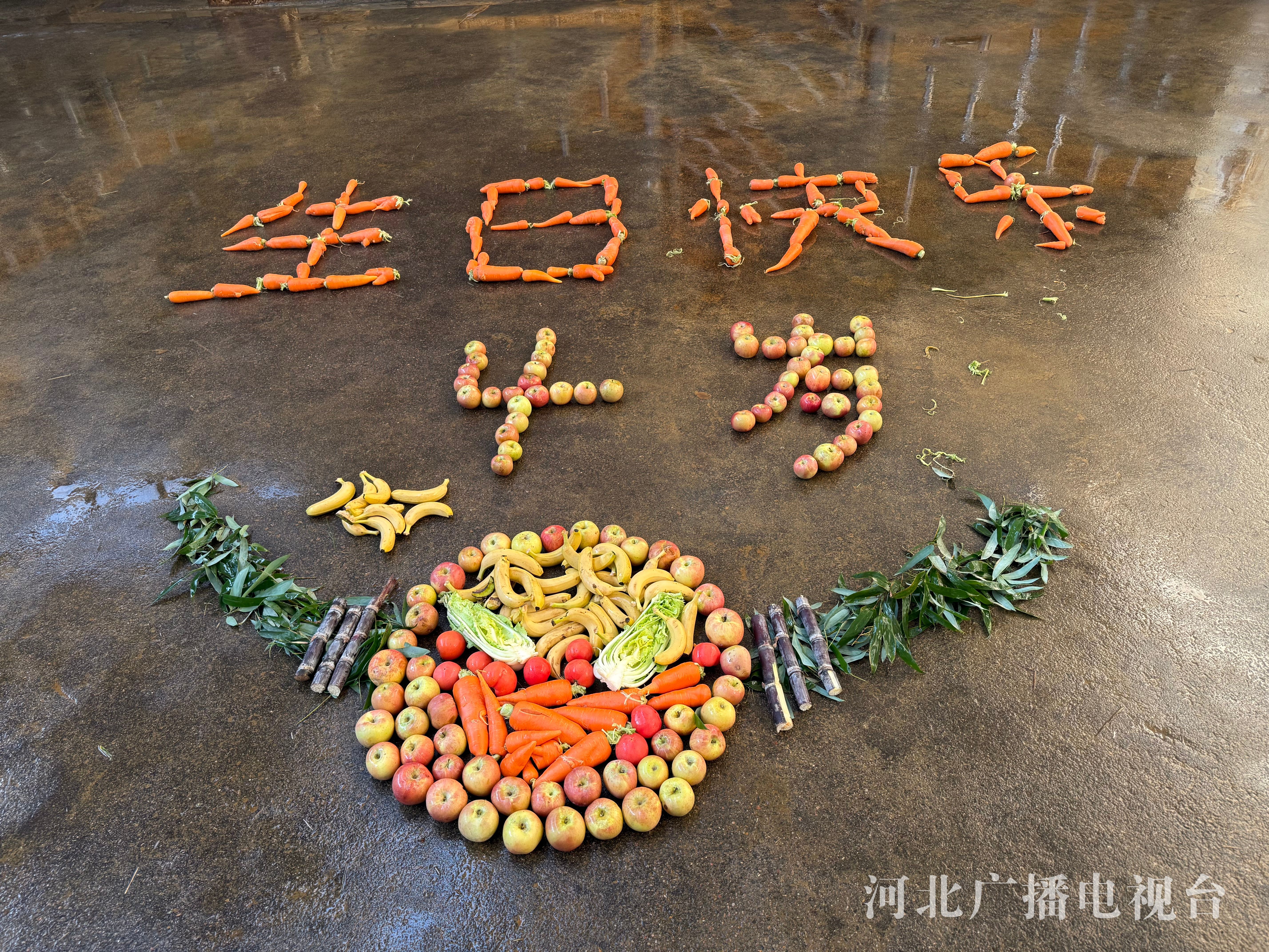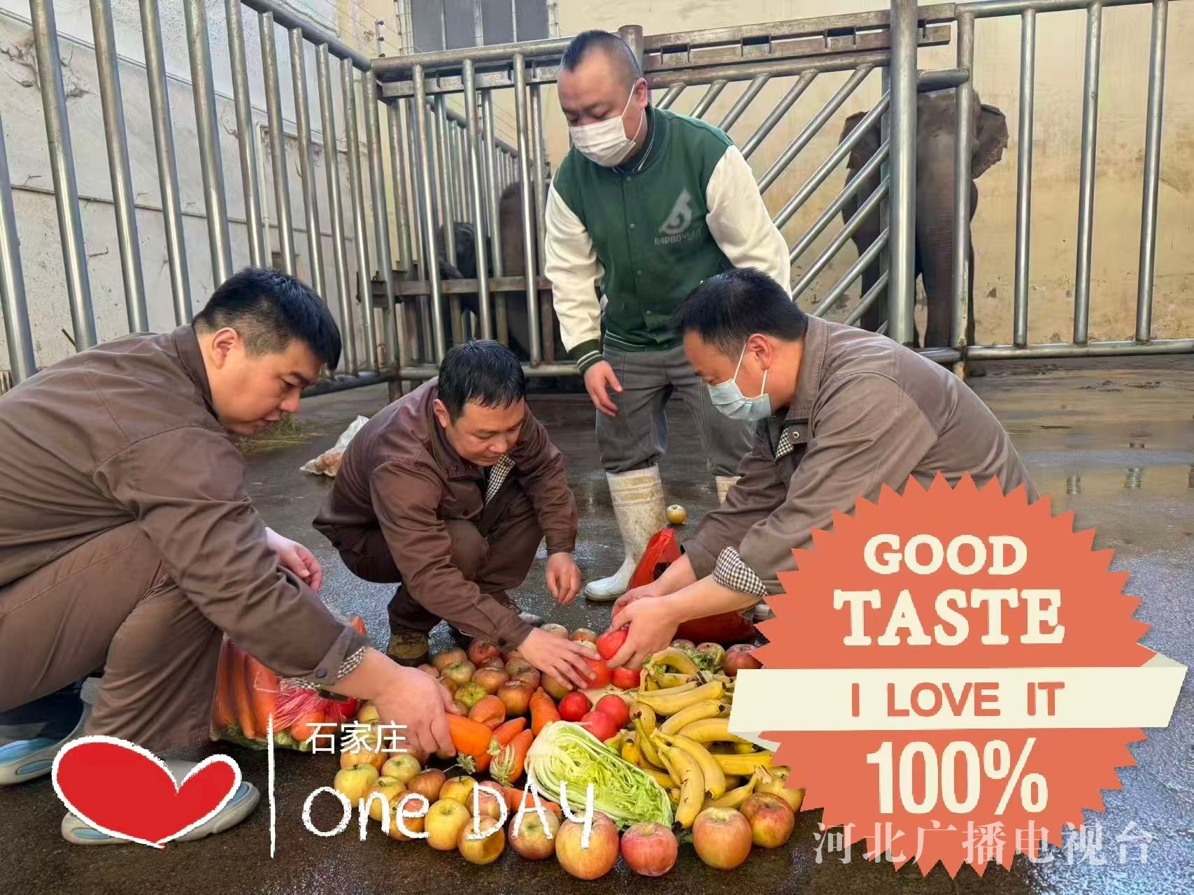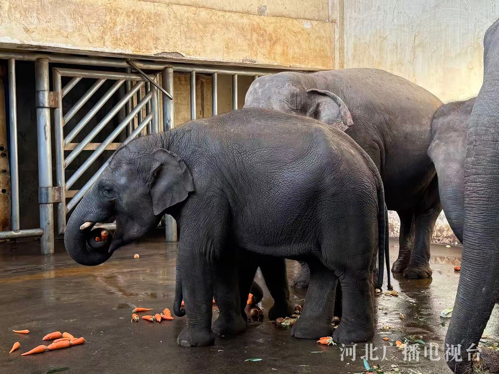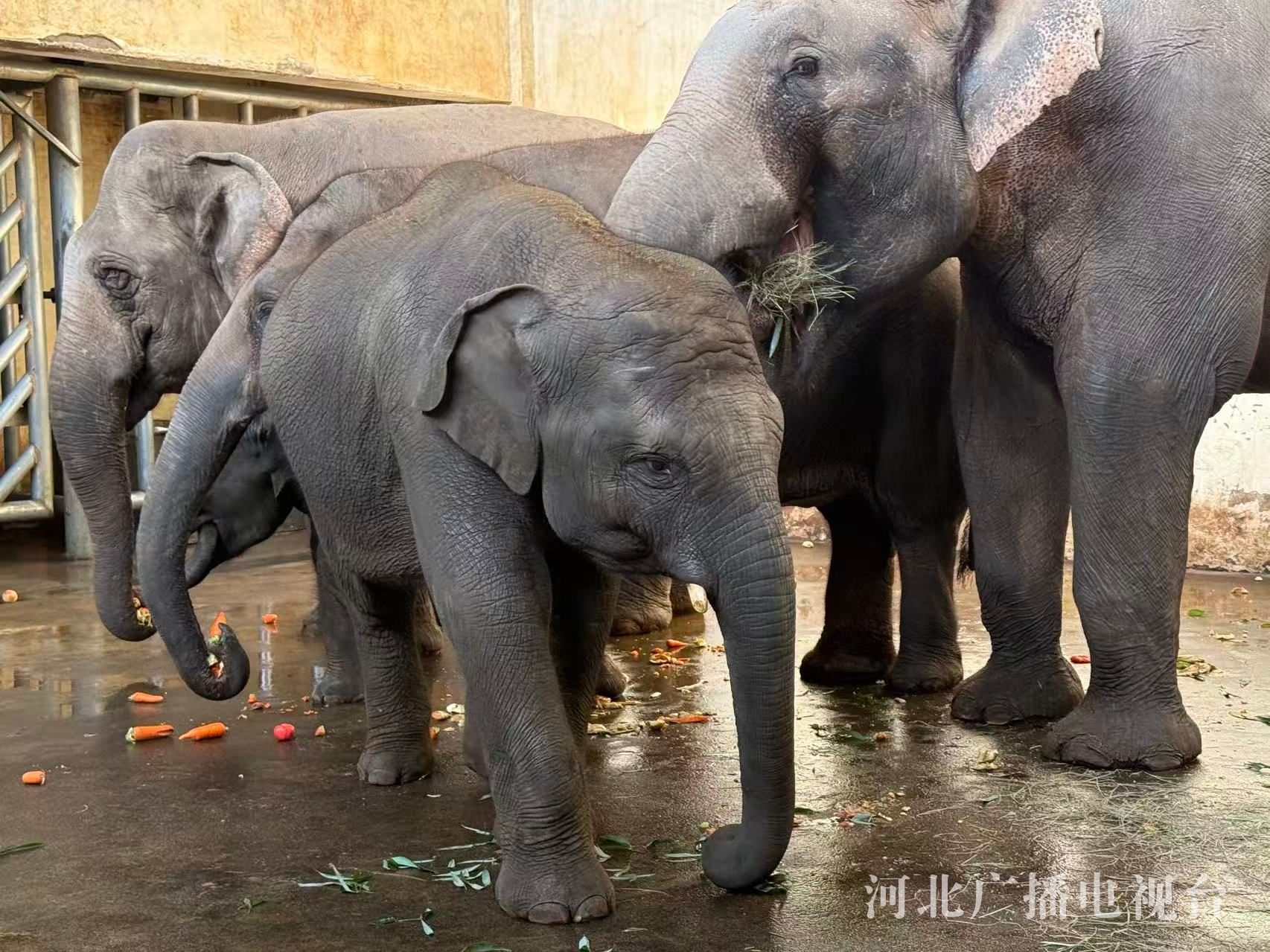 冀时客户端报道(河北台 杜岩卿 通讯员 孟永红)12月15日,石家庄市动物园的亚洲象“奥冬”迎来了它的4岁生日。饲养员用胡萝卜摆出“生日快乐”四个大字,苹果、香蕉、白菜、甘蔗等点缀成彩色拼盘。随着饲养员打开大门,“奥冬”一家兴奋地冲了进来,共享这丰盛的生日宴。