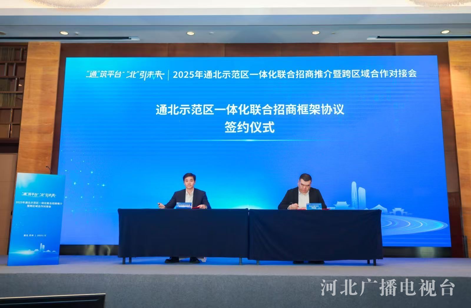 冀时客户端报道(河北台李春霞 杜光楠)12月17日,“通”筑平台 “北”引未来——2025年通北示范区一体化联合招商推介暨跨区域合作对接会在苏州成功举办。