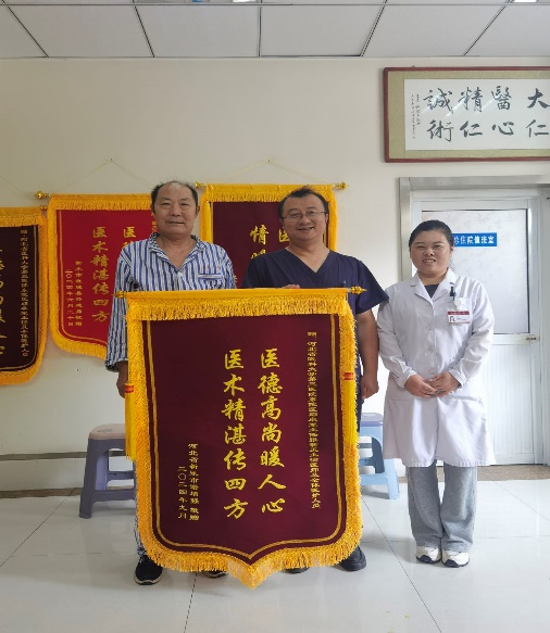 家属送来了锦旗,感谢张新玉大夫和贾立伟护士,锦旗上写着:医德高尚暖人心,医术精湛传四方。