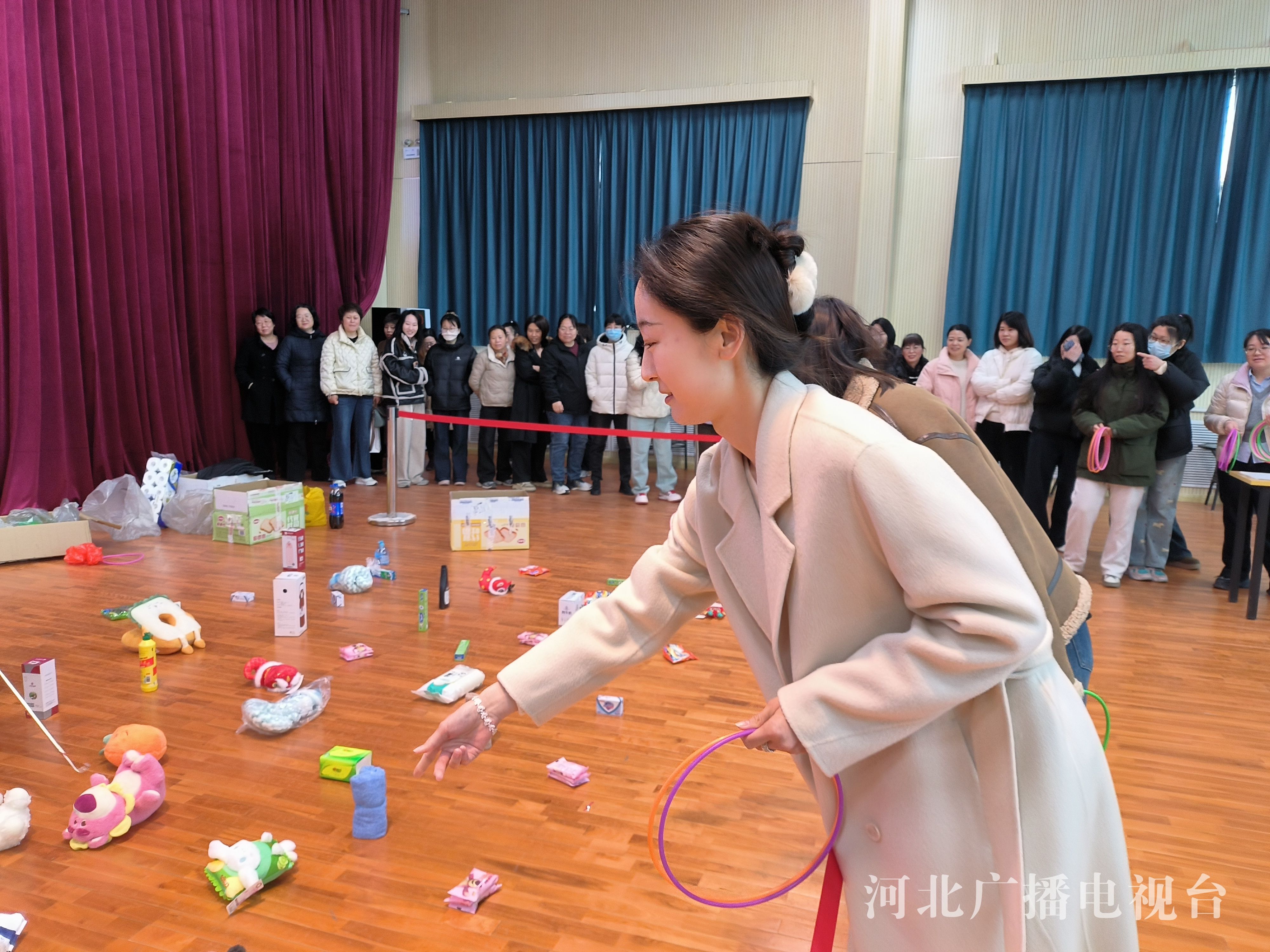 活动现场,大家在观看完艾草锤的制作视频之后,便纷纷动手制作起来,她们专注地整理着艾草包的形状,灵巧地编着绳子,以确保艾草锤扎得既结实又美观,空气中弥漫着艾草的清香,现场氛围温馨而幸福。同时,另一边的套圈活动也在火热的进行中,各式各样的奖品错落有致地摆放在地上,女职工们手持套圈,轻轻一掷,套圈在空中划出一道优美的弧线,落在心仪的奖品上,引来周围一片赞叹与掌声,气氛热烈而友好。