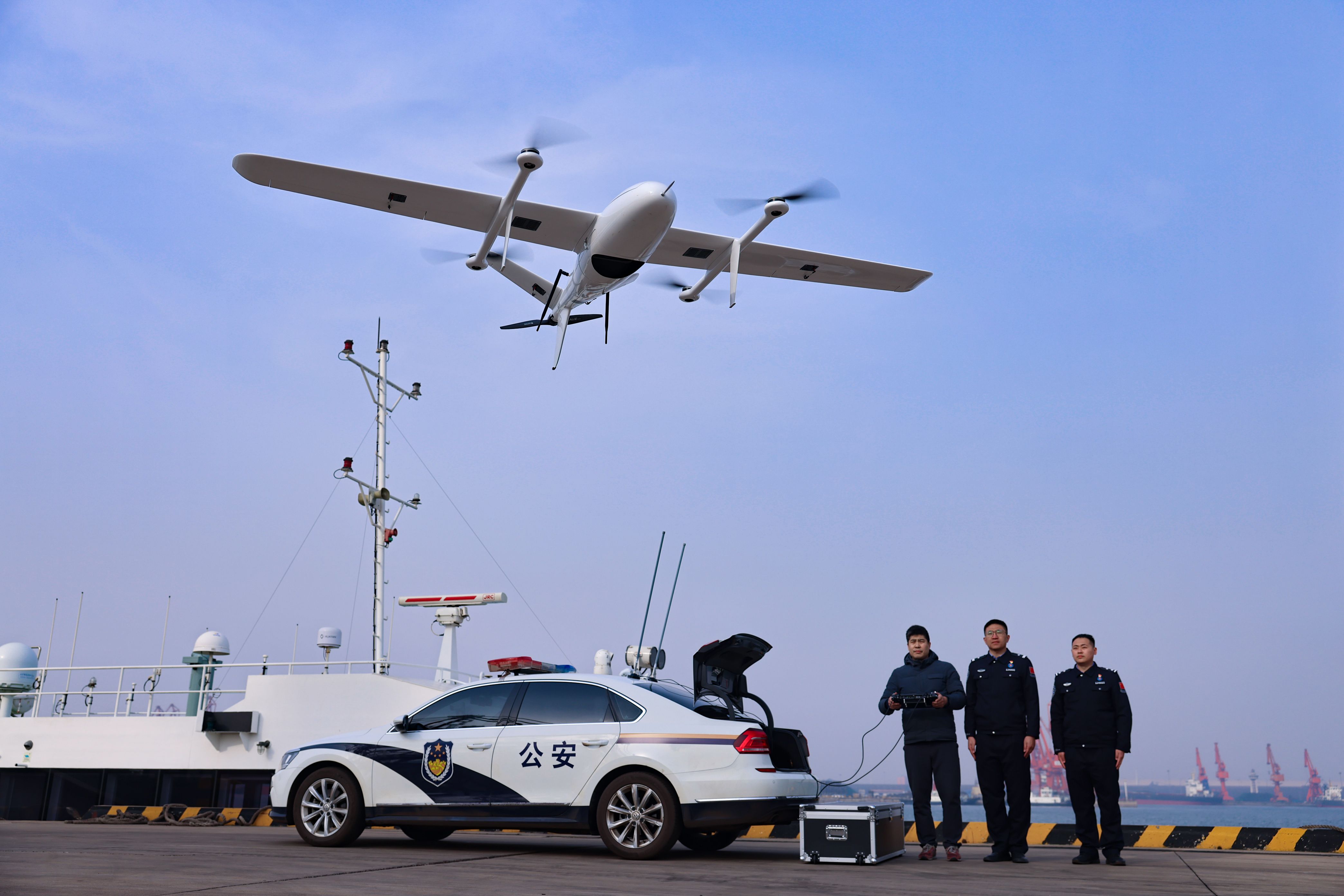图为唐山边检站利用无人机对锚地及开放水域开展巡查