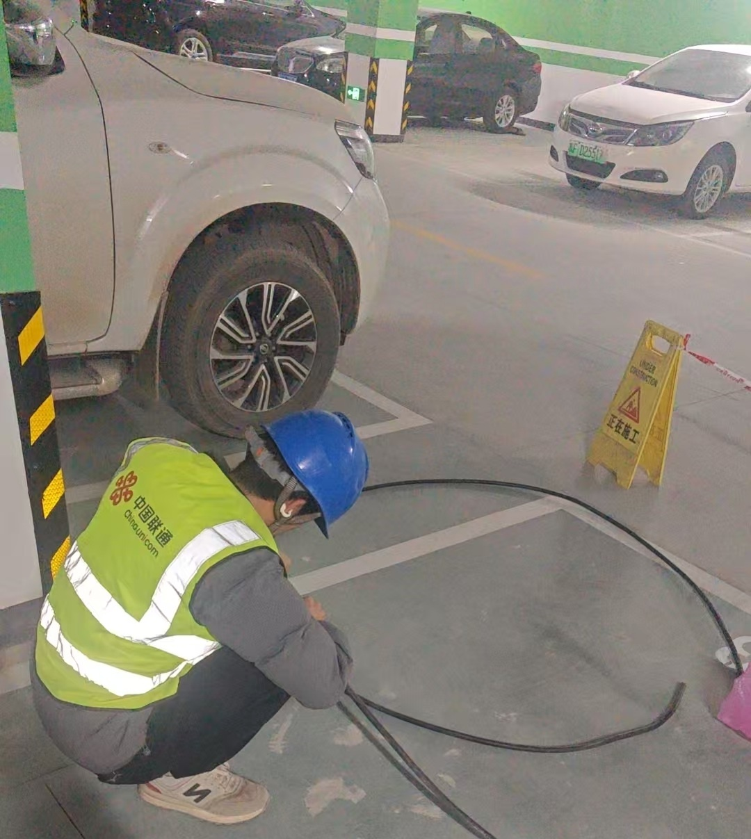 雄安新区是我国首个大规模开发利用地下空间的城市,地下停车场面积超2200万平方米。图为雄安联通在地下停车场部署室内分布设施,确保信号满格覆盖。